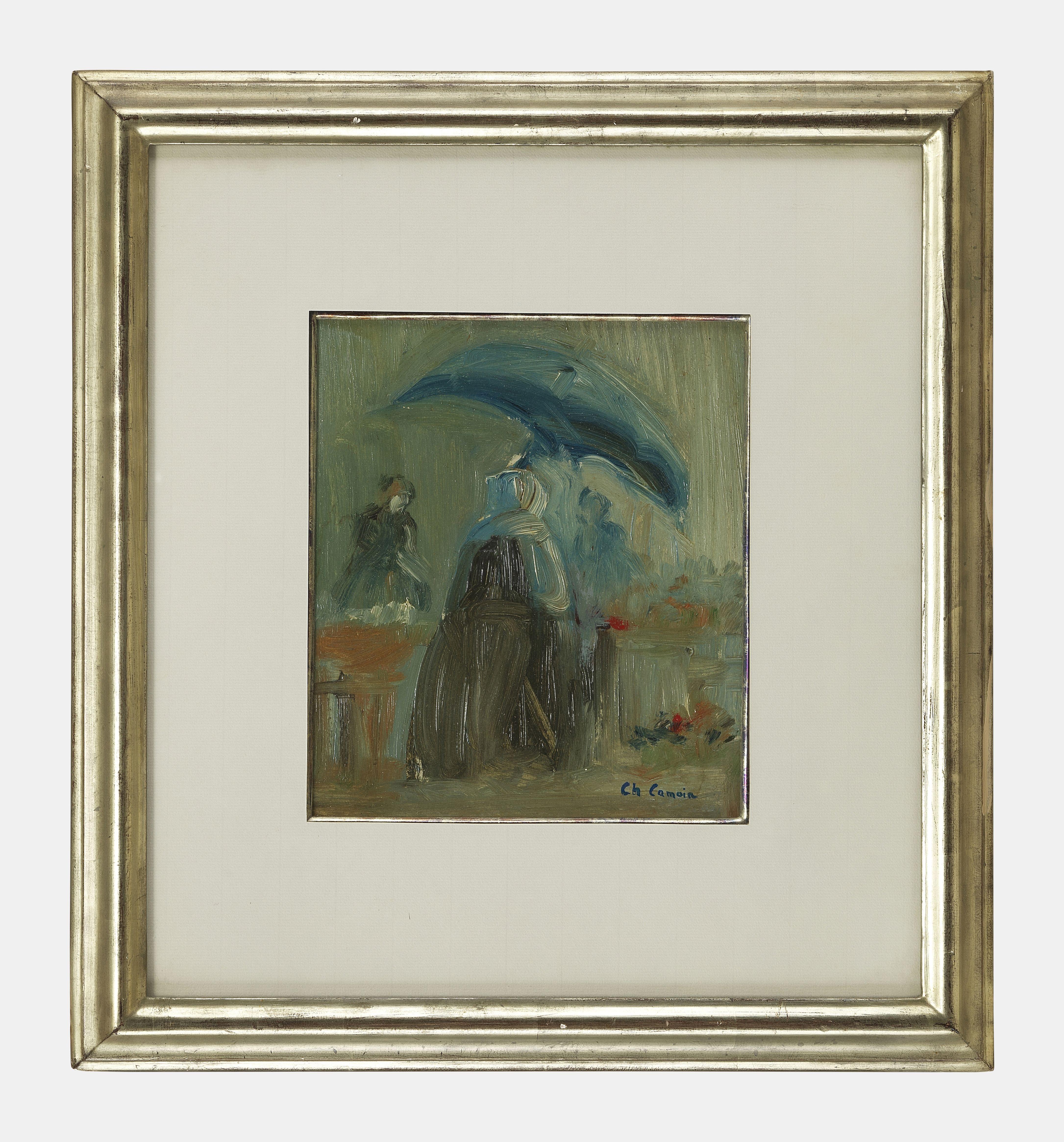 Femme à l'ombrelle, huile sur carton, 23x20 cm