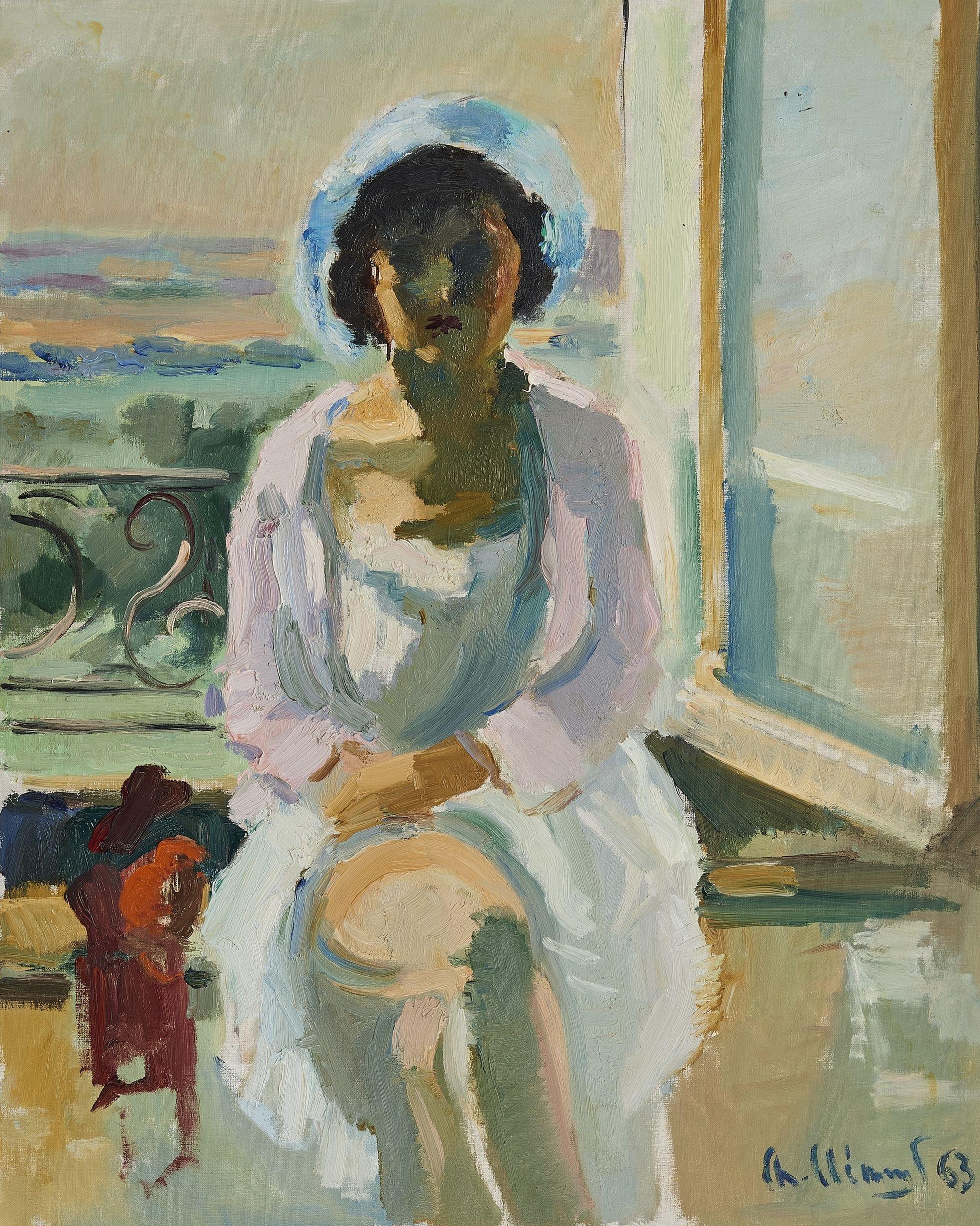 Contre-jour à la fenêtre, huile sur toile, signée et datée 1963, 92x73 cm