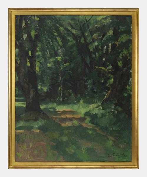 Fille de l'artiste dans un parc, huile sur toile, attribuée au d...