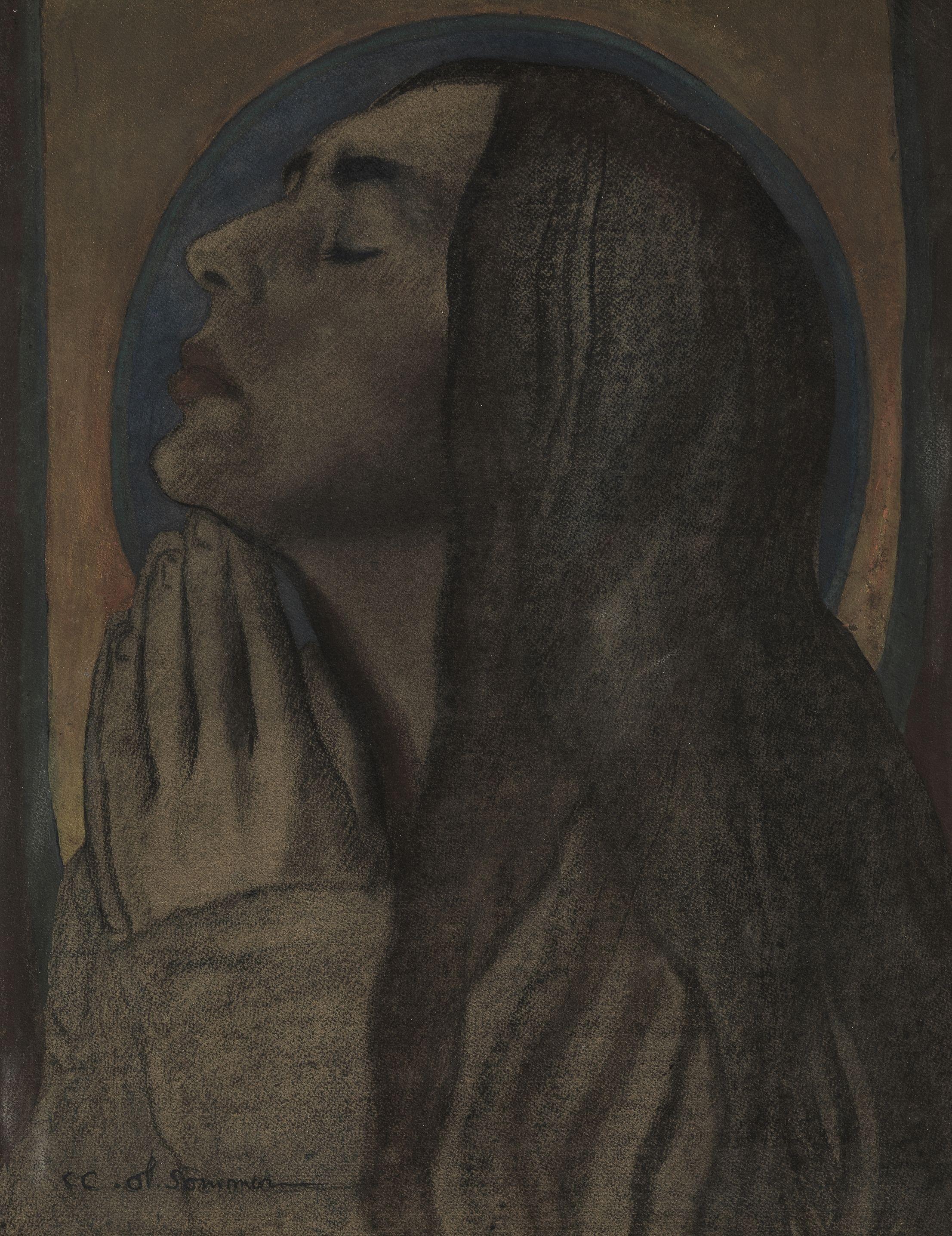 Prière, aquarelle sur papier signée, 21,5x17 cm