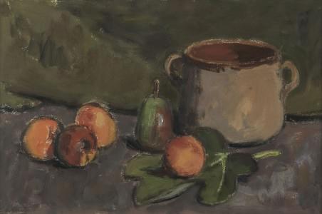 Nature morte aux abricots, huile sur papier, signée, 25x39 cm