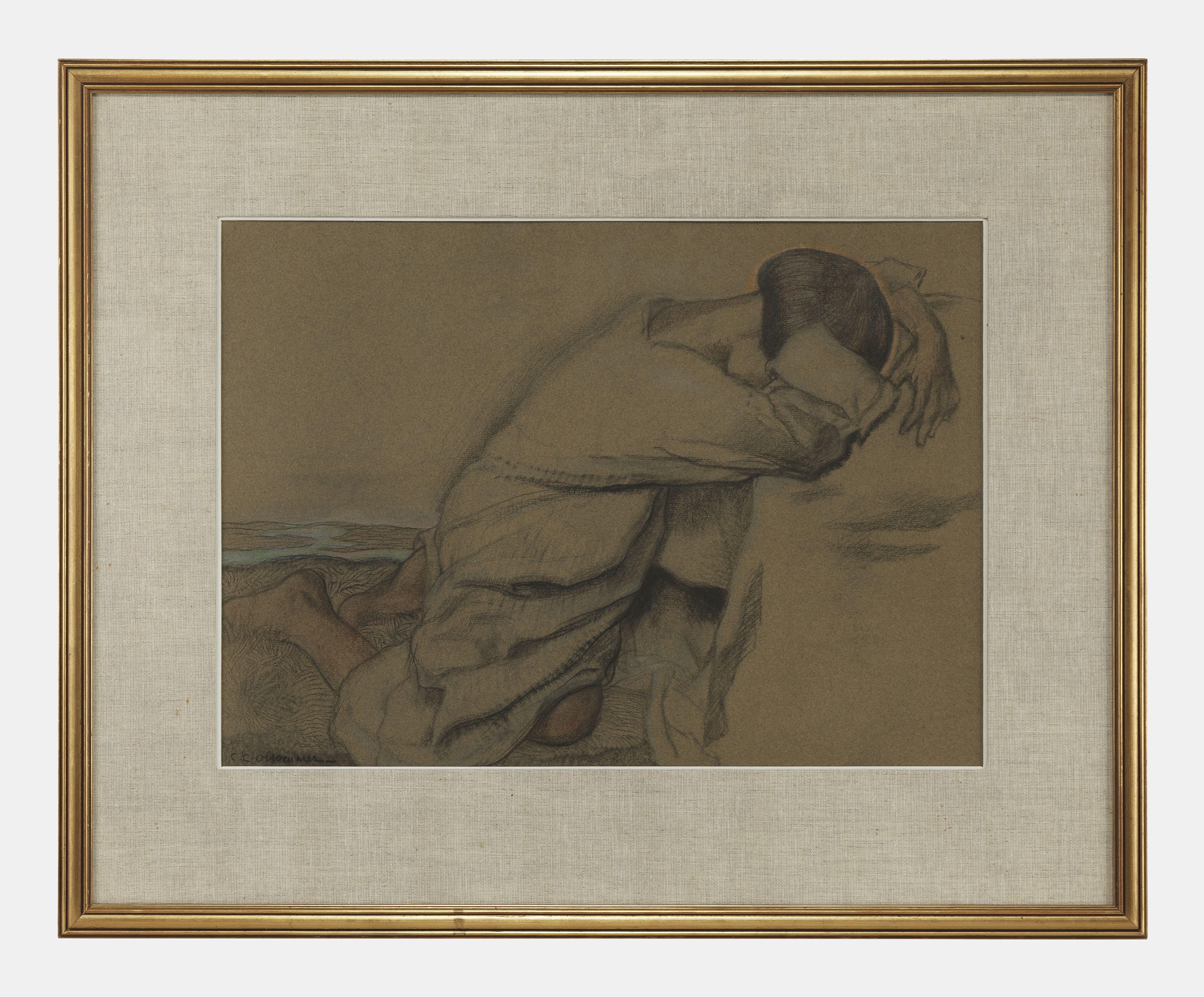 Femme endormie, fusain et pastel sur papier, signé, 36x47,5 cm