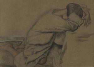 Femme assise recroquevillée, fusain et pastel sur papier, signé,...