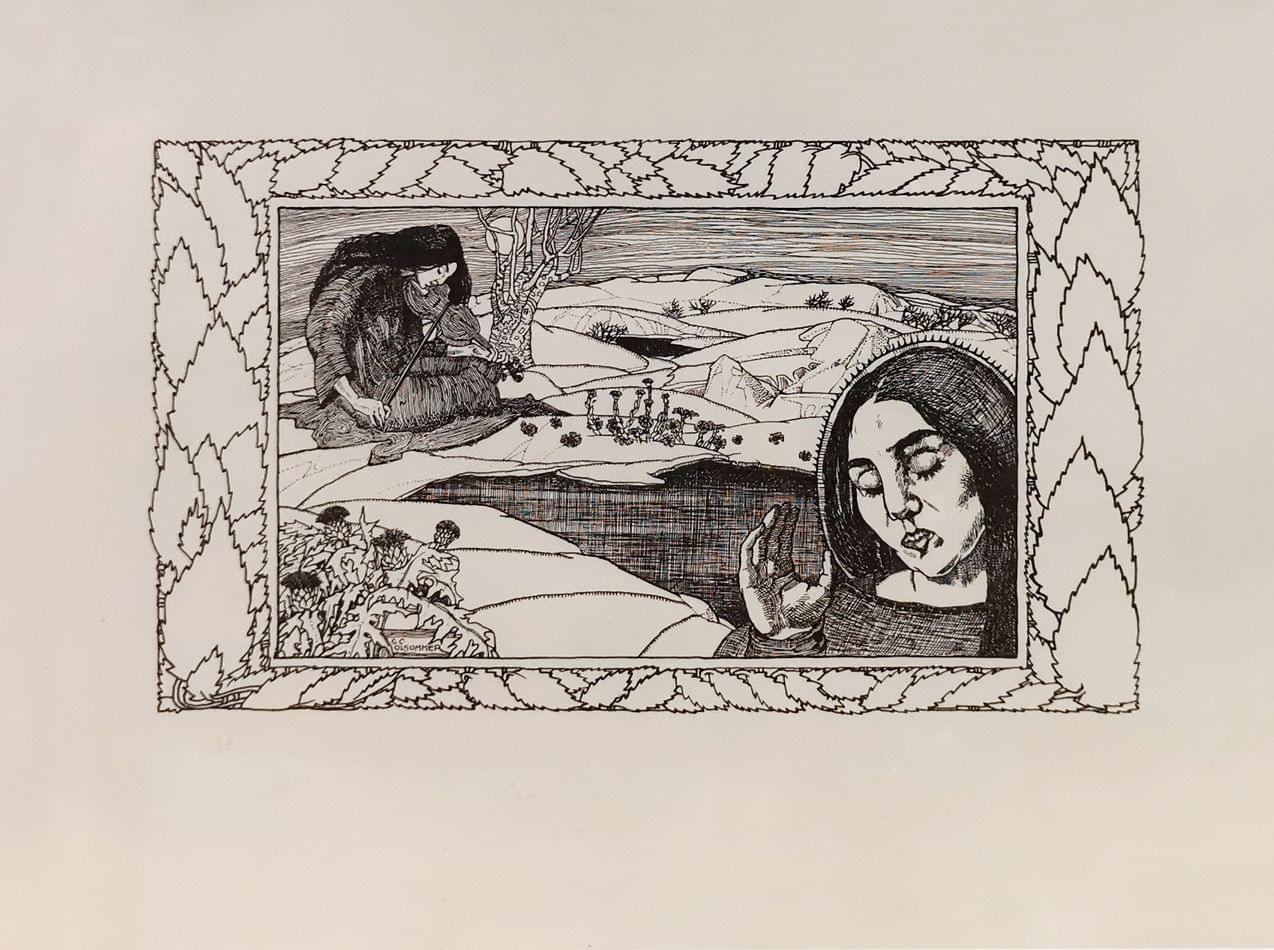 Maternité, sanguine sur papier contrecollé sur carton, non signé...