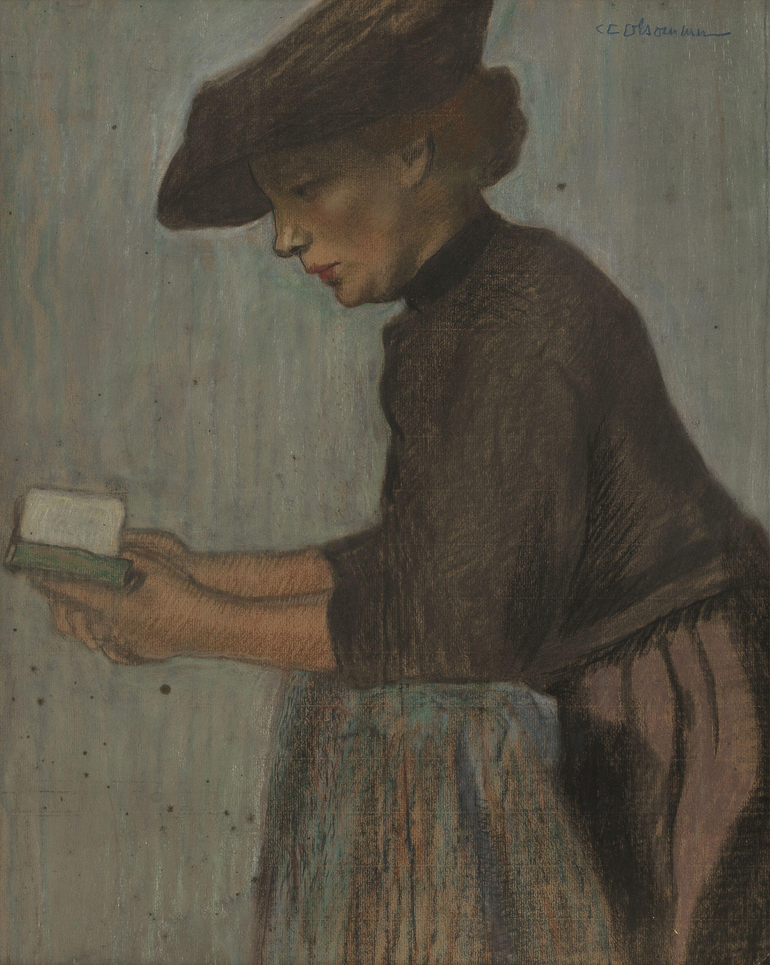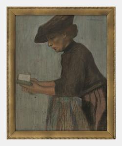 Gasparine, Valaisanne en prière, pastel sur papier, signé, daté Vevey 1935 au verso, 49x39 cm