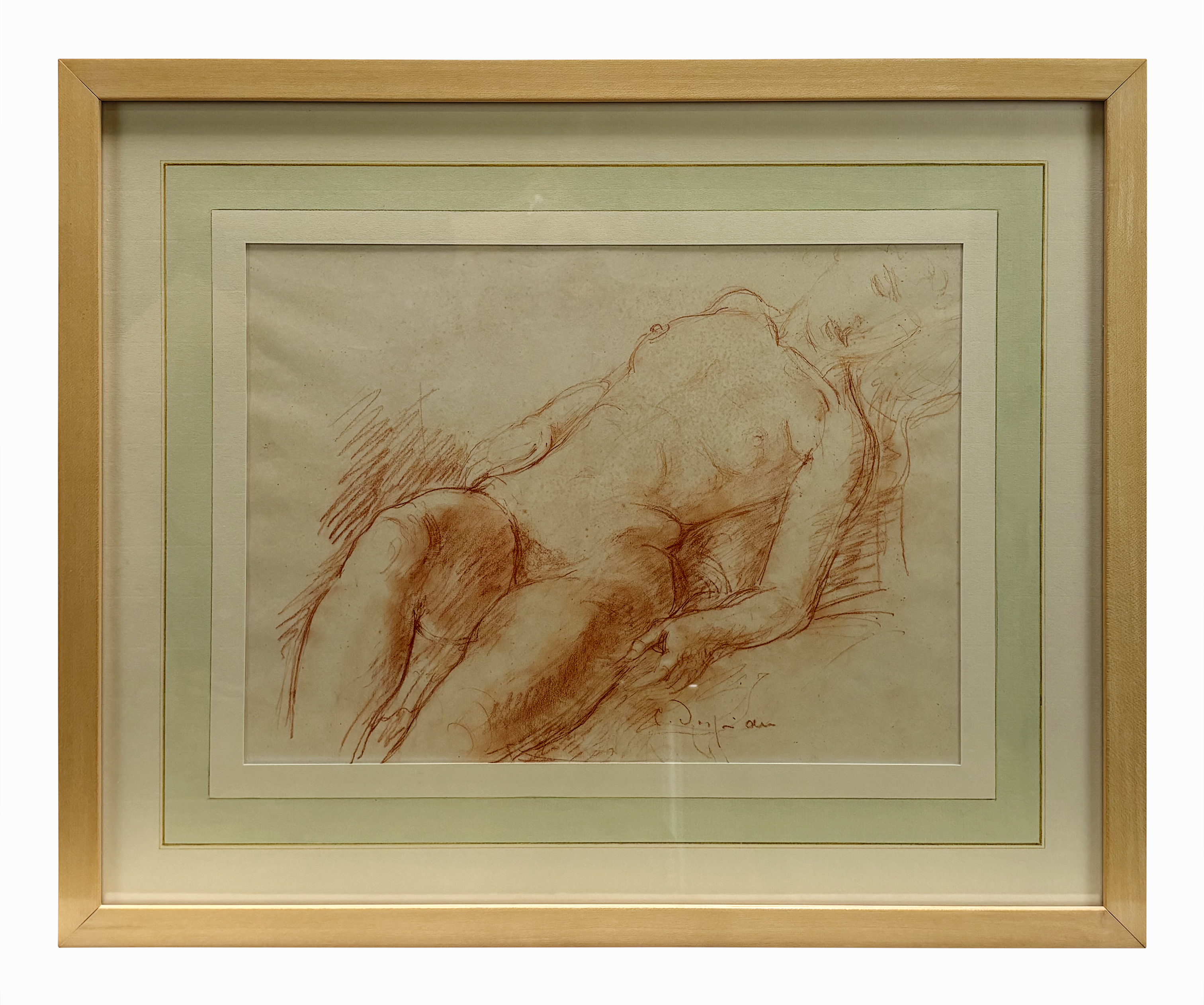 Nu féminin, sanguine, signée, 25,5x35 cm