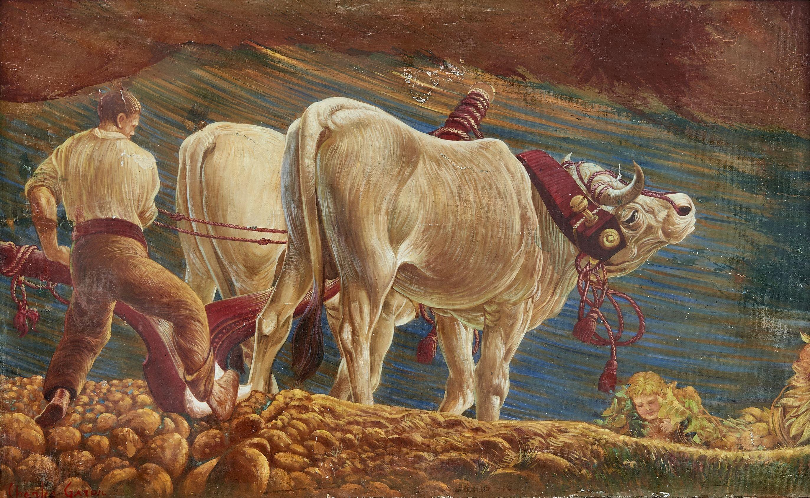 Le laboureur, huile sur toile, signée, 38x61 cm