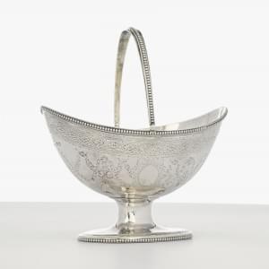 3299. Sucrier à anse sur piédouche gravé d'entrelacs d'époque victorie...