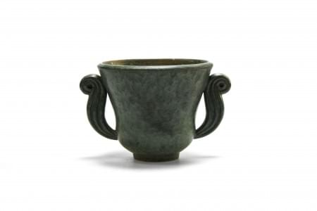 Vase à anses serpentin à décor d'un bouquet, céramique émaillée...
