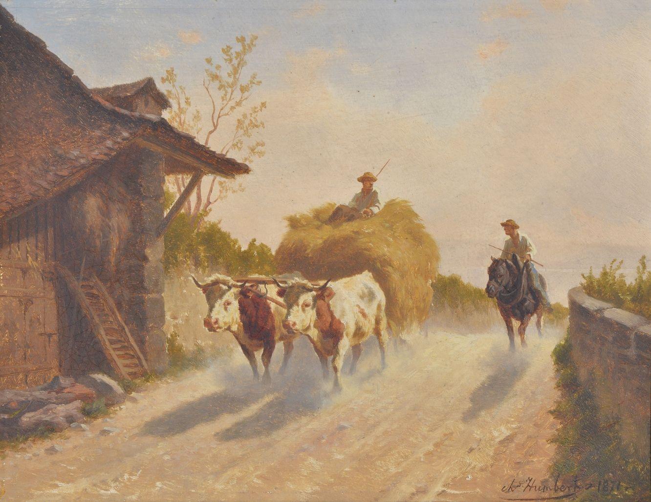 Vue du temple du petit Saconnex avec le Salève, aquarelle sur pa...