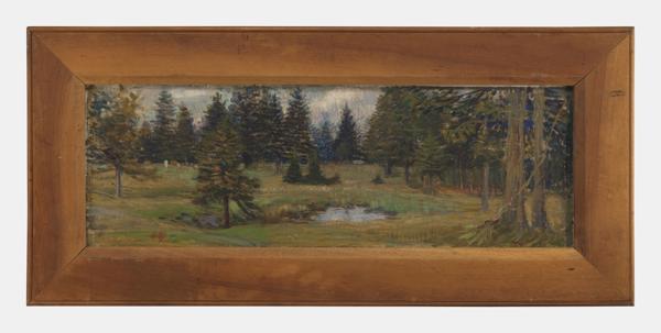 Prise d'eau à la rivière, huile sur toile, signée, 31x40 cm
