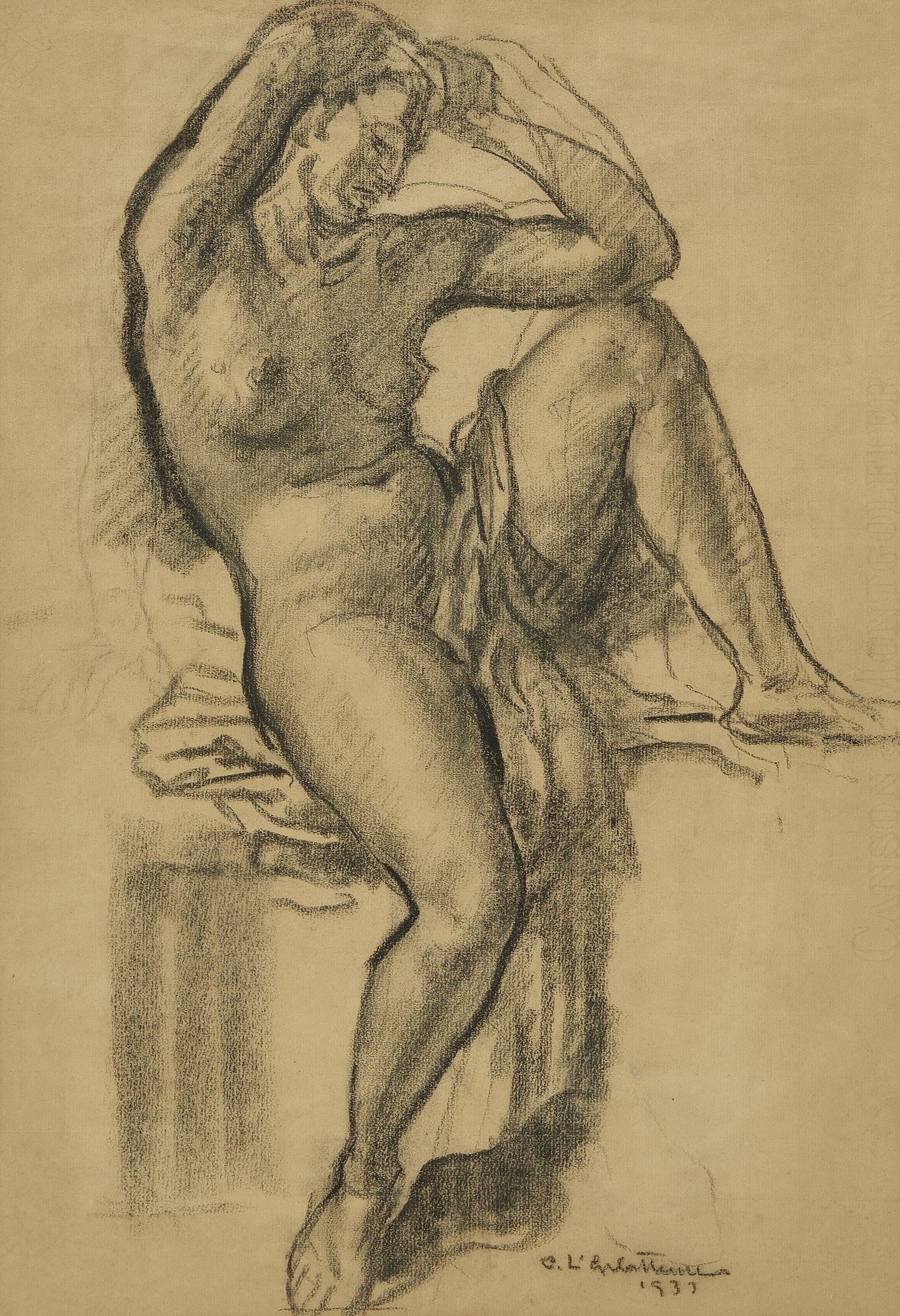 Nu féminin assis, fusain sur papier, signé et daté 1933, 63x44 cm