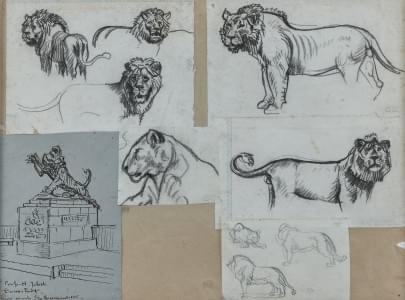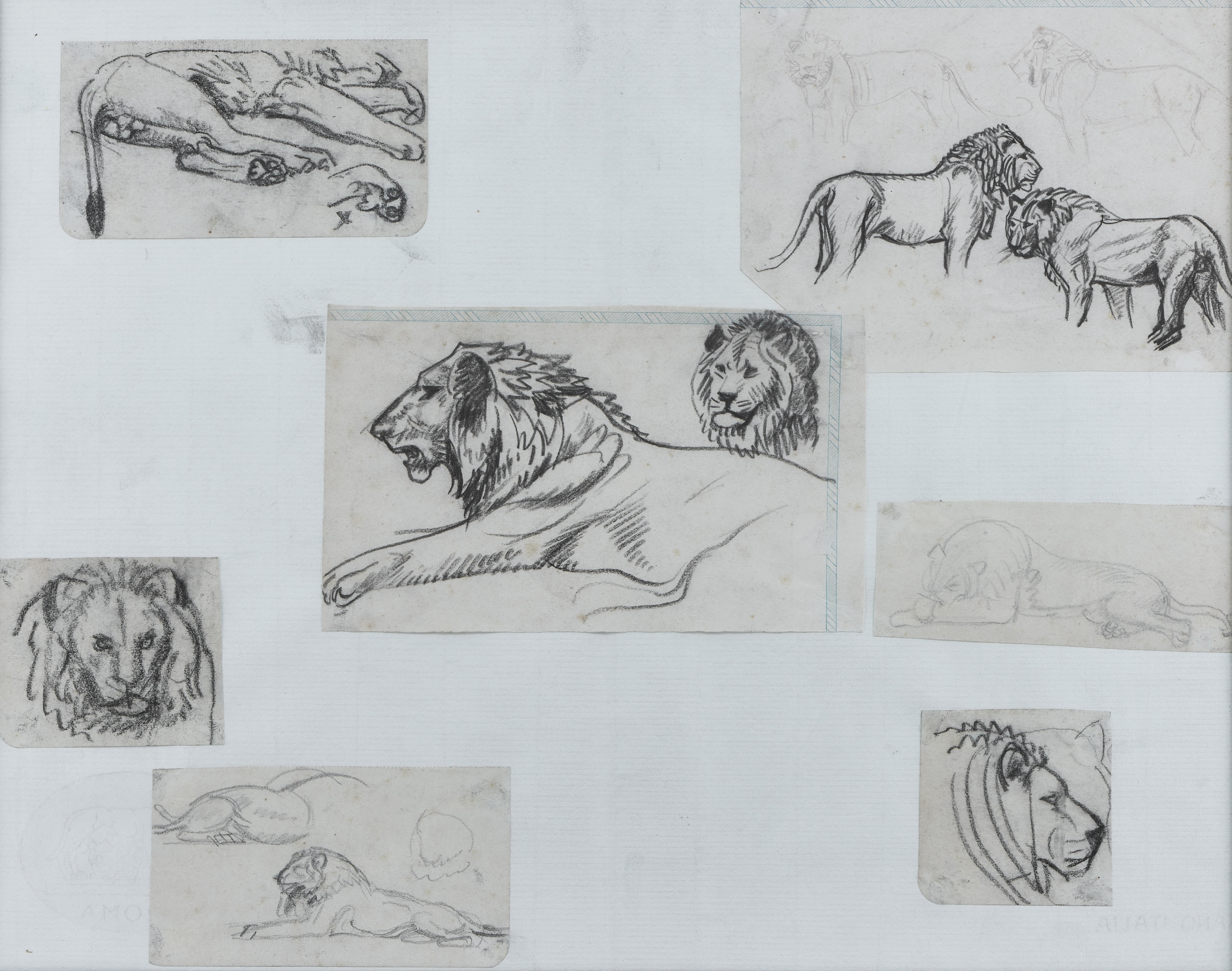 Croquis de rapaces, fusain sur papier, signé,28x20 cm