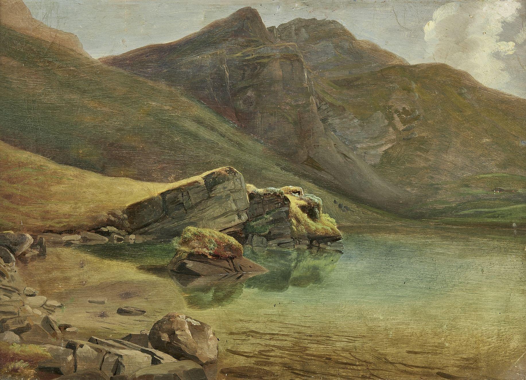 Vue du lac Lioson, papier marouflé sur panneau, 35x48 cm