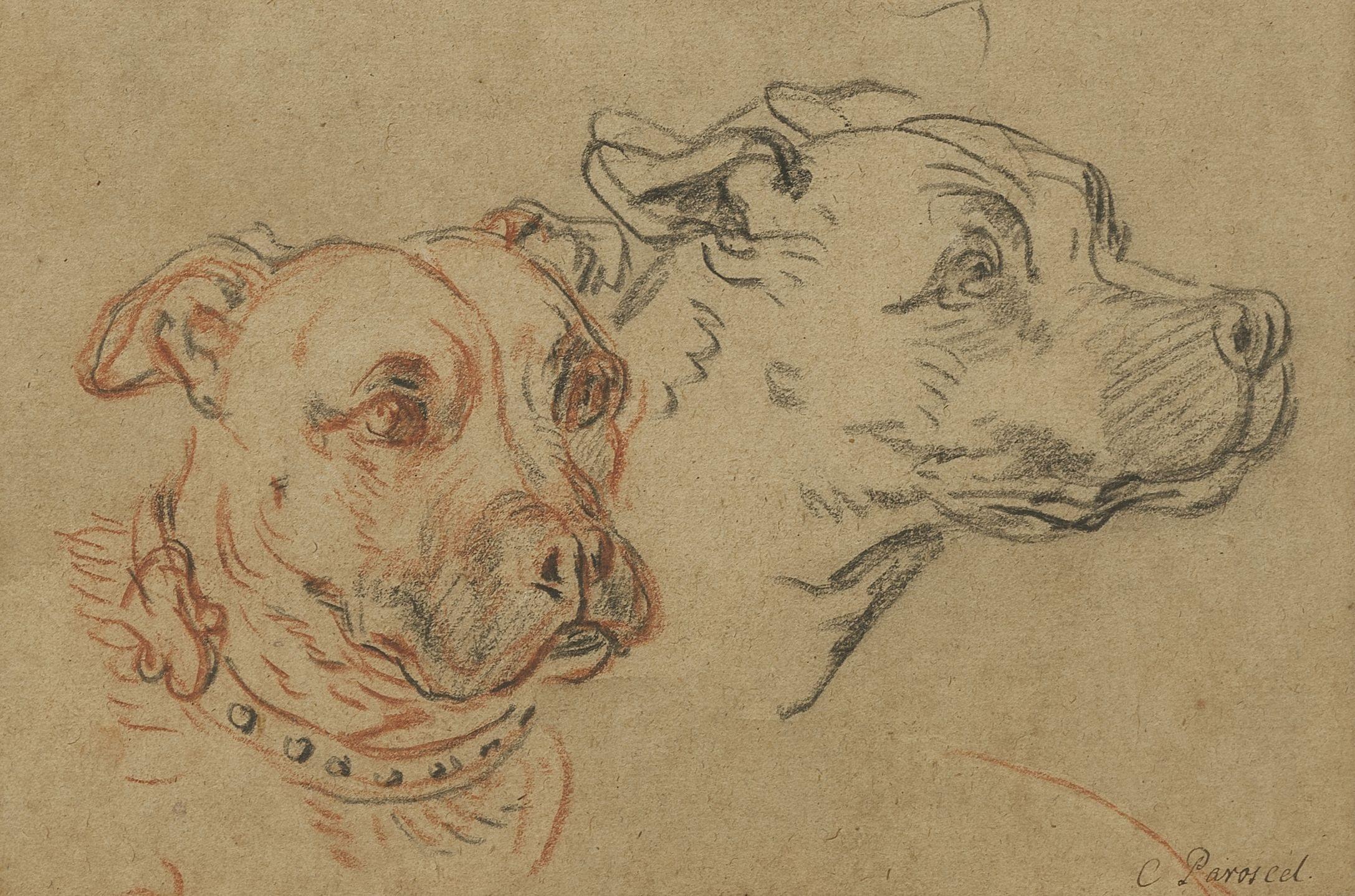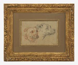 Deux têtes de chiens, étude, sanguine et fusain sur papier, signé, 15x23 cm. Provenance: Comte Jacques de Bryas, Paris, 1898; Galerie Jacques Perrin, 1987; couple d'amateurs en Suisse
