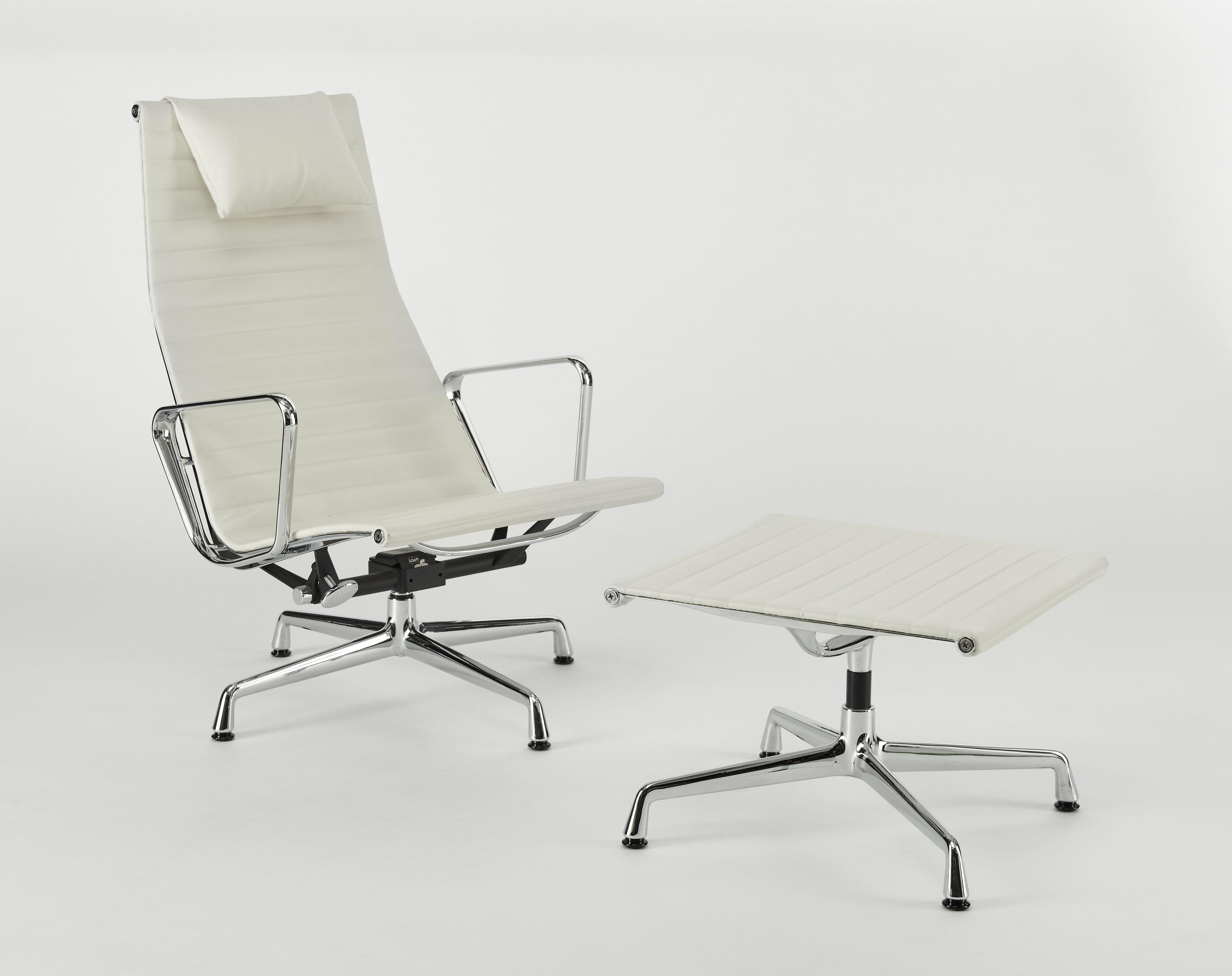 Fauteuil aluminium group et son ottoman, cuir blanc, fonte d'aluminium. Provenance: Teo Jakob, Genève