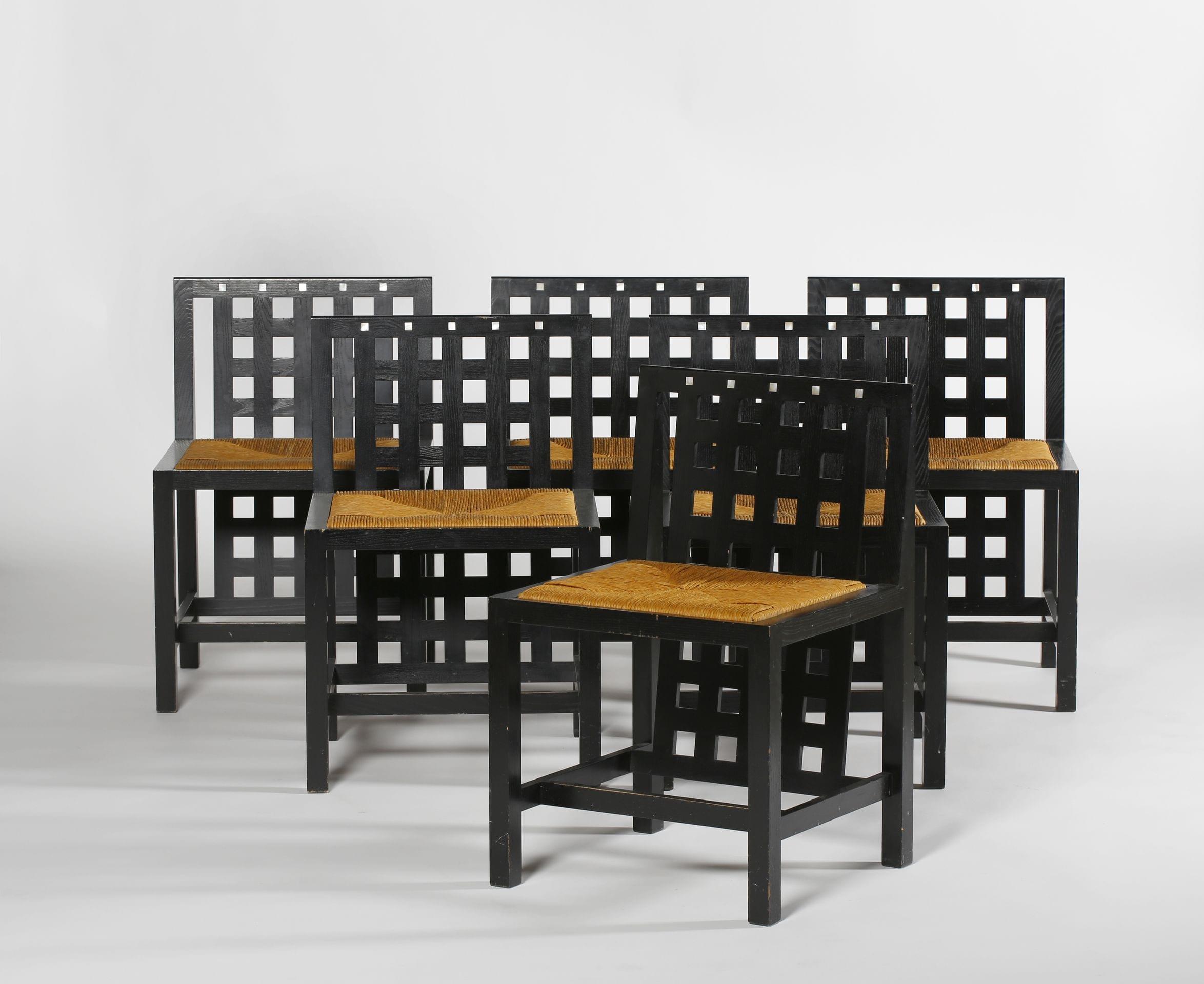 Suite de six chaises DS3, frêne teinté noir, 49x45x75 cm