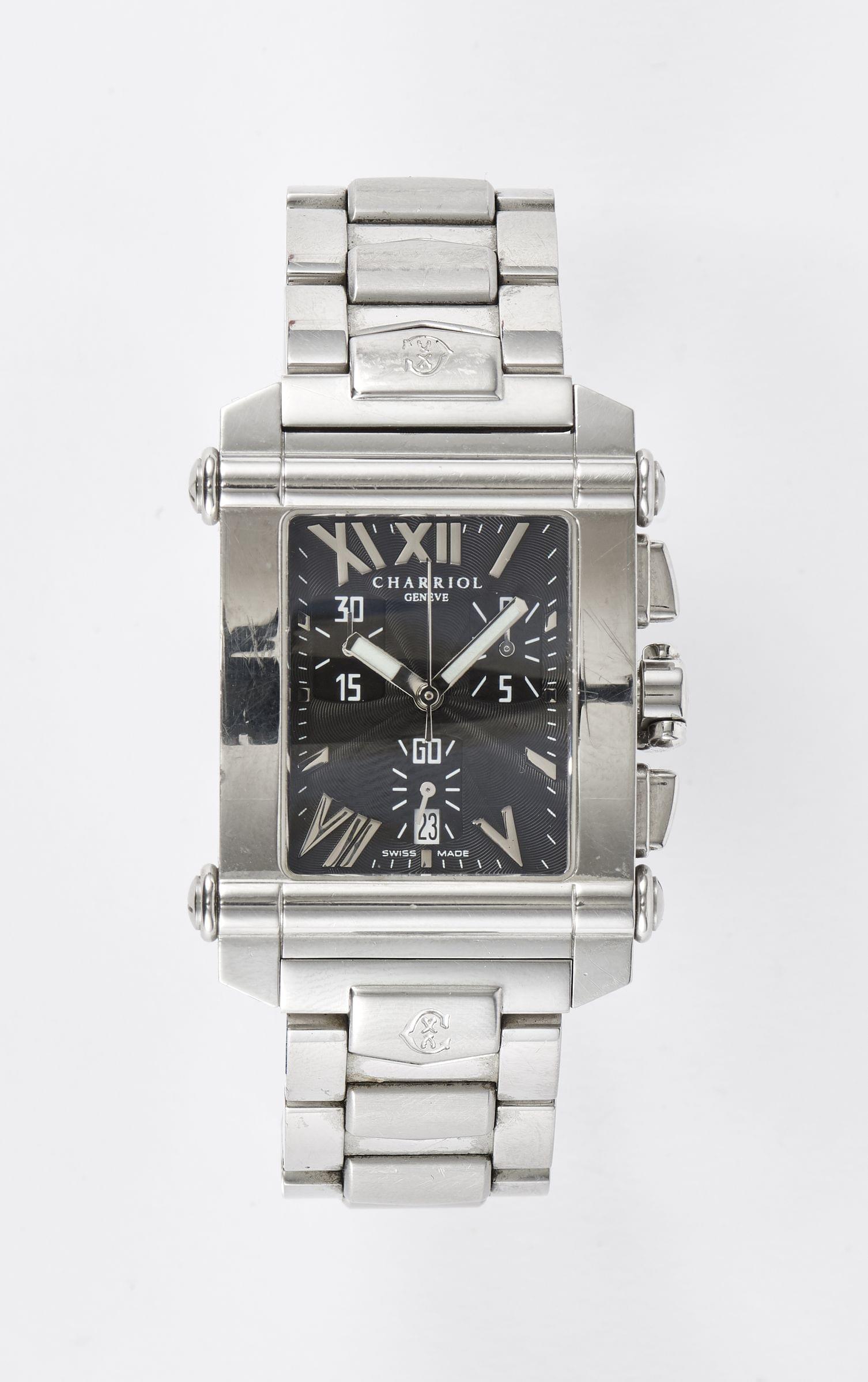 3083. Charriol, montre bracelet rectangulaire chronographe à quartz