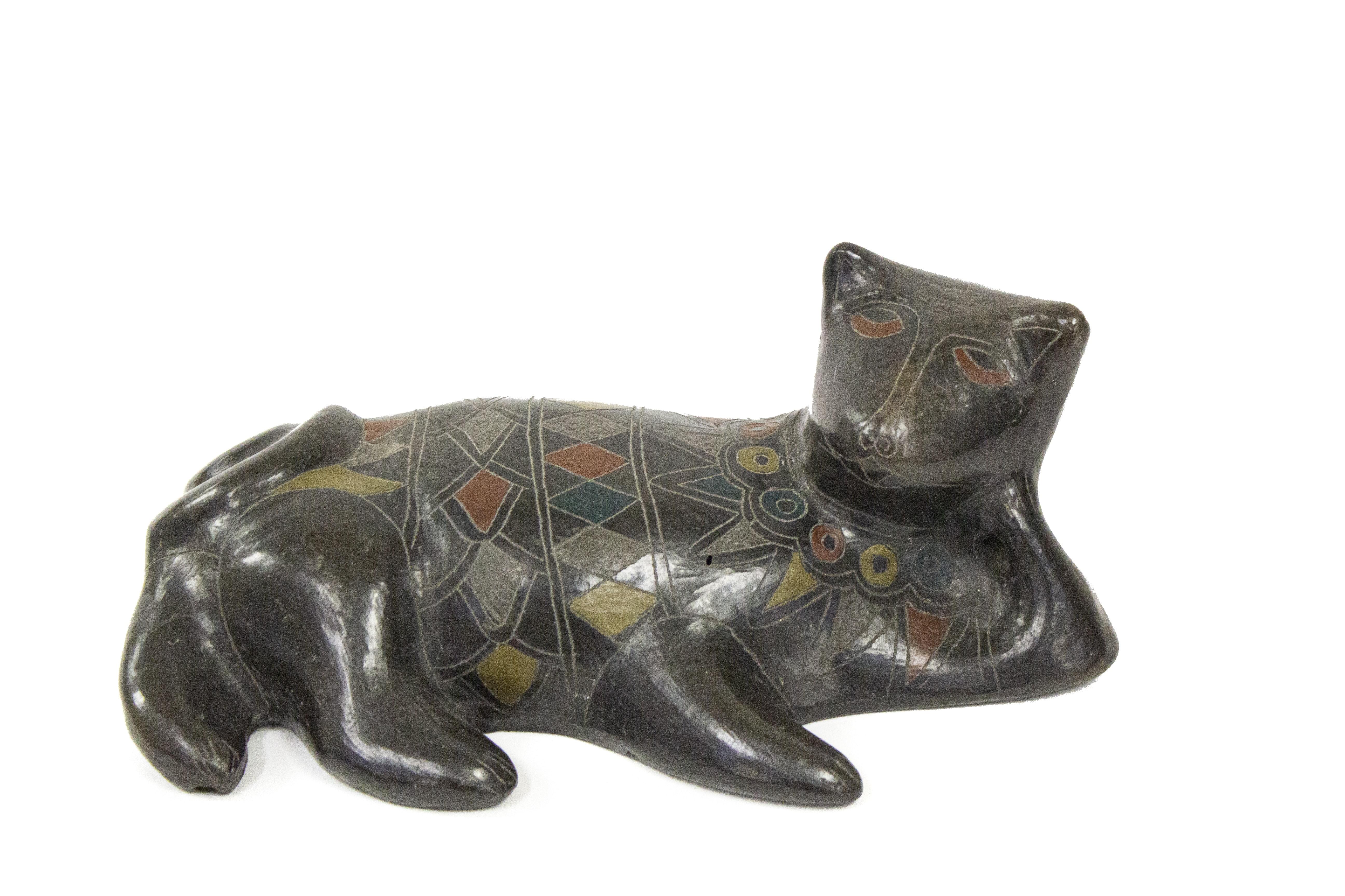 Anses à têtes de félins, grès à couverte monochrome turquoise ta...