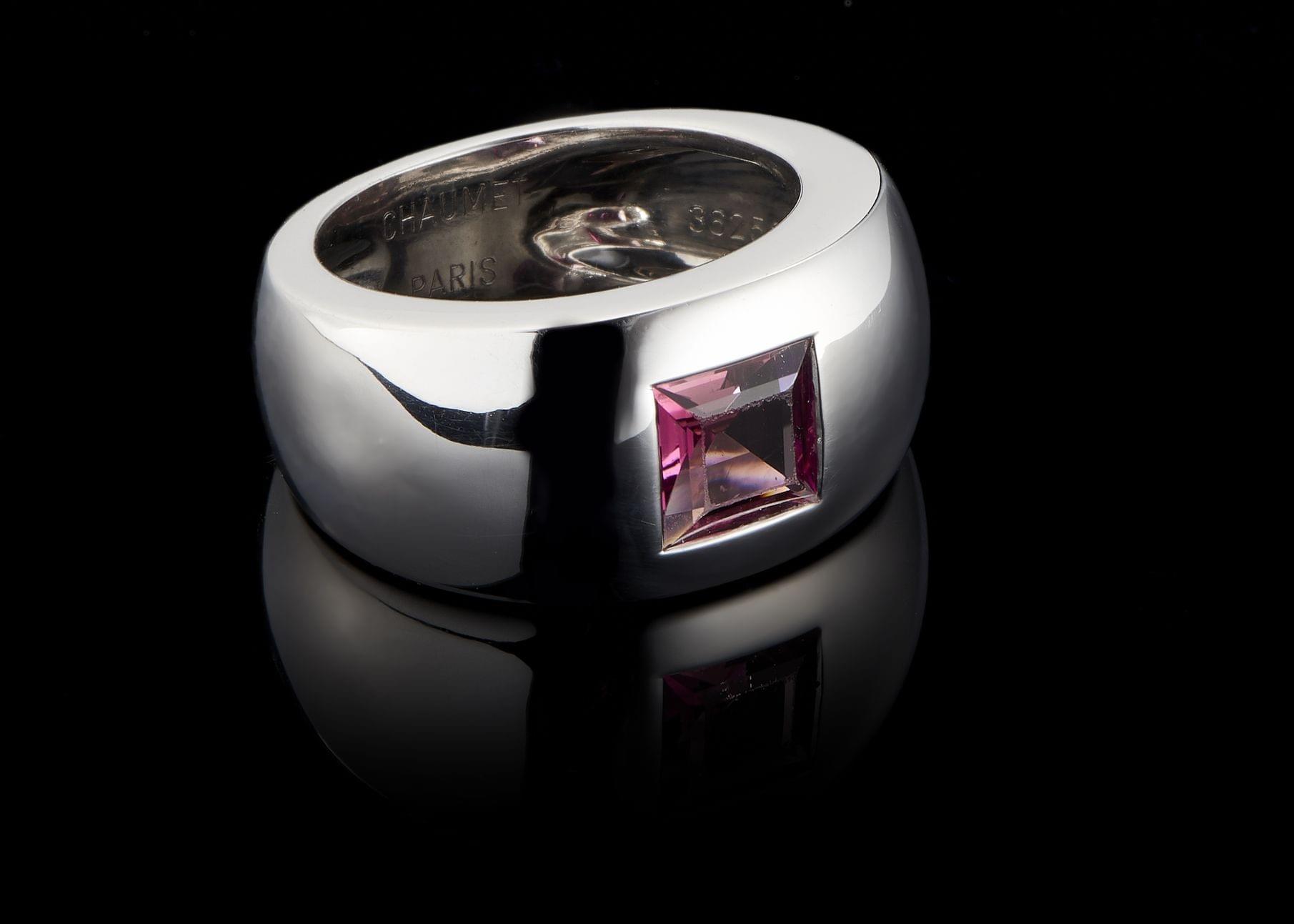 222. Chaumet, bague jonc sertie d'une tourmaline rose taille princesse (env. 1 ct)