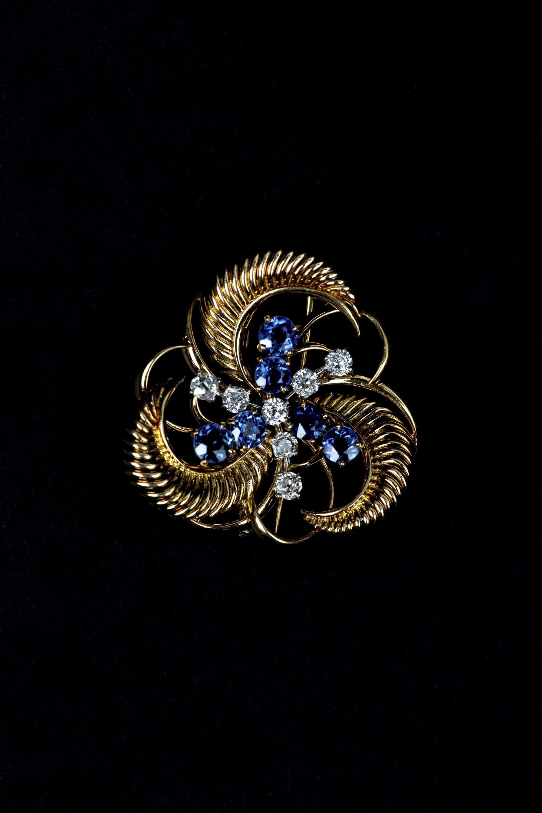 889. Chaumet, broche sertie de saphirs (env. 2 ct) et de diamants taille ancienne (env. 0,6 ct)