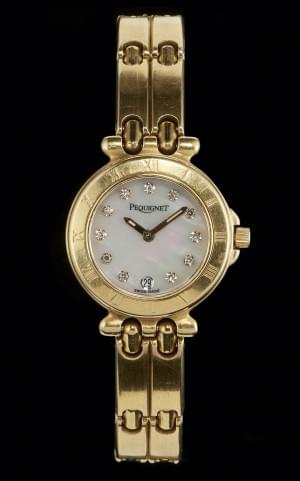 Cadran nacré, aiguilles dorées, index à points sertis de diamant...