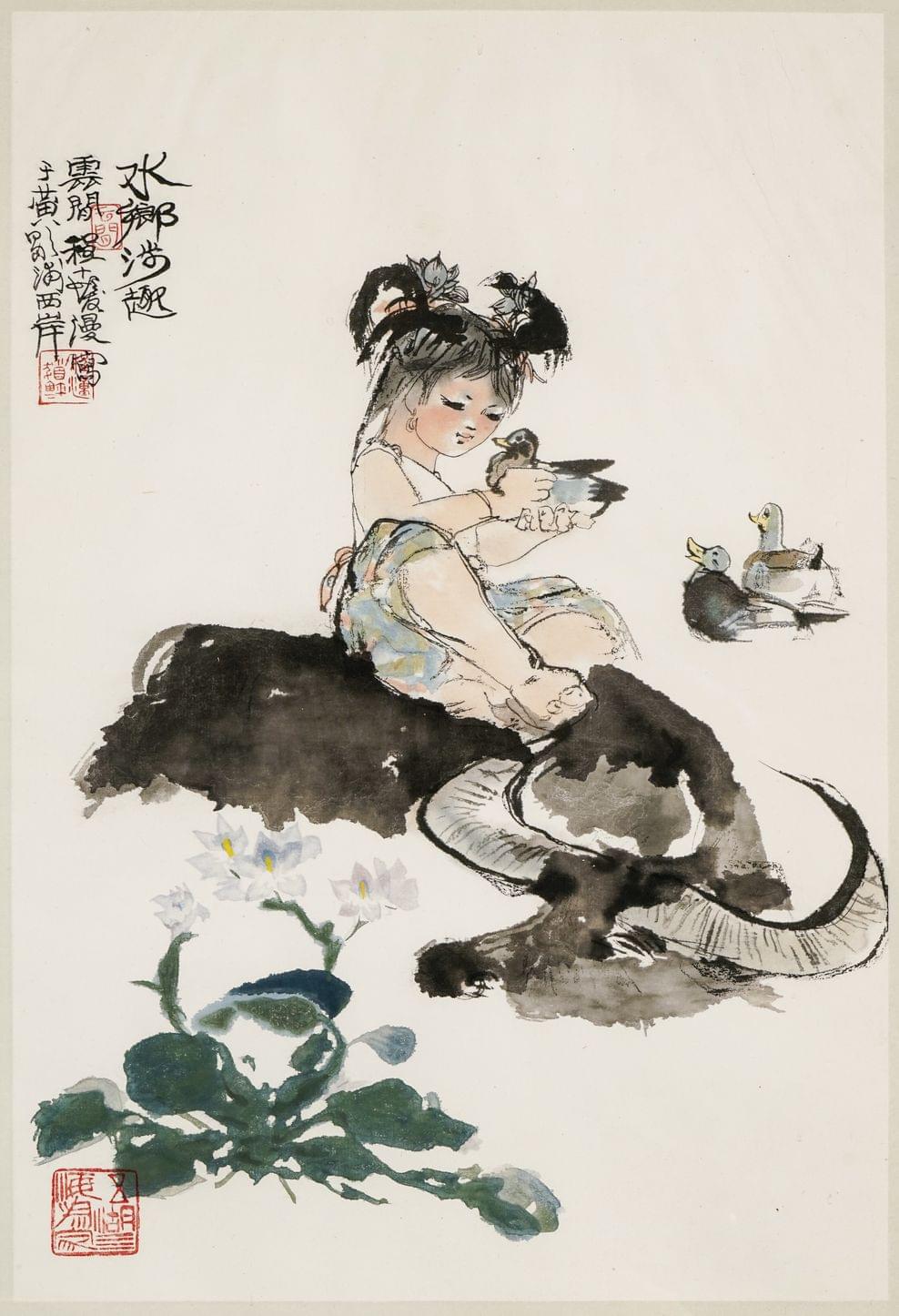 Shui Xiang She Qu, encre et couleurs sur papier collée sur soie, signée de trois sceaux, 97x62,5 cm