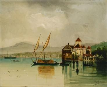 Le départ au marché, gouache sur papier, signée, 18x23 cm