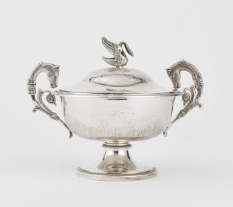 4663. Drageoir néoclassique à anses cheval et fretel cygne