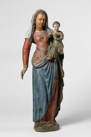 Bois sculpté doré et polychrome, H 28 cm