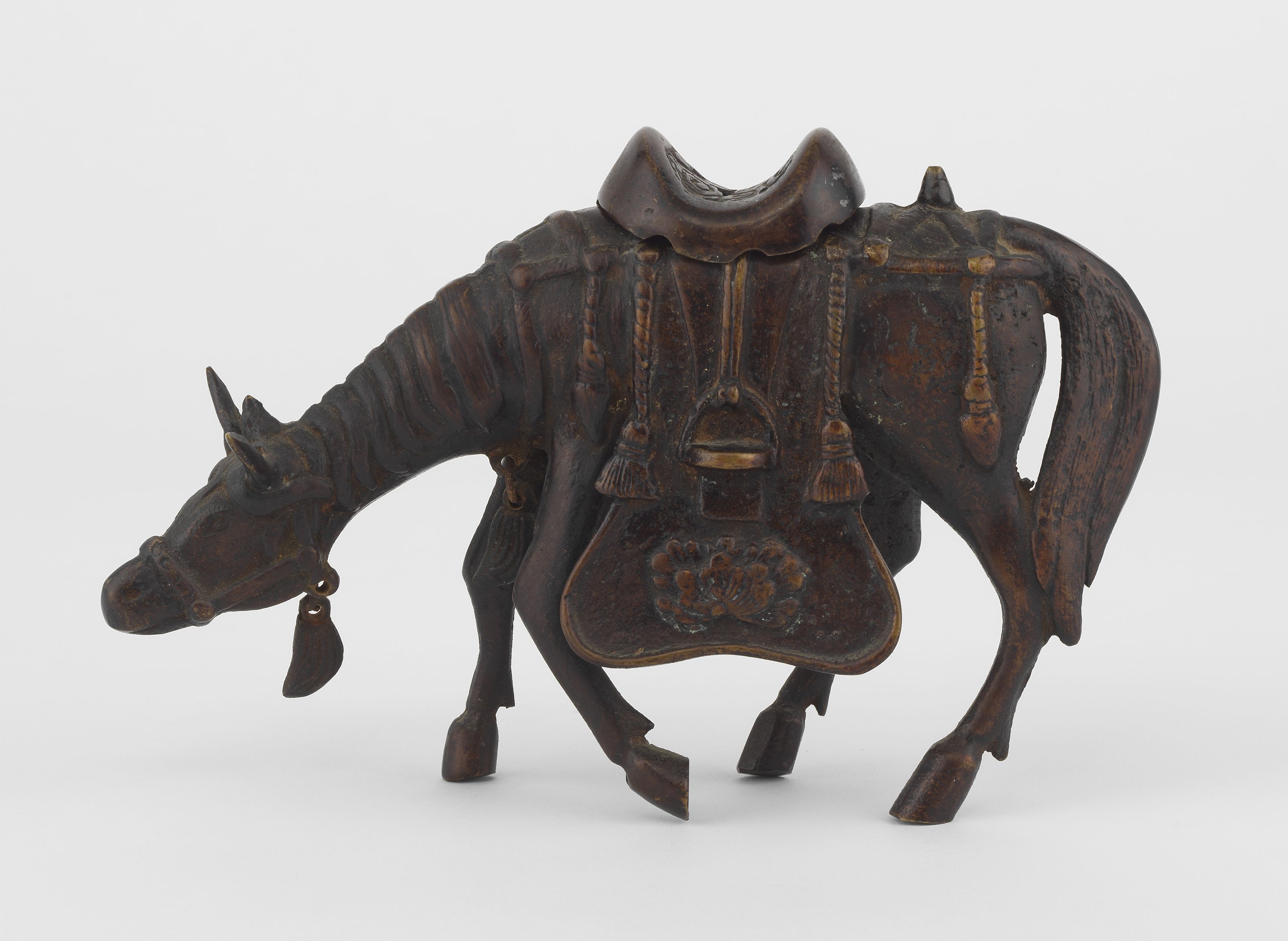 Deux objets en bronze à patine brune et or, H 15 et 24 cm. Prove...