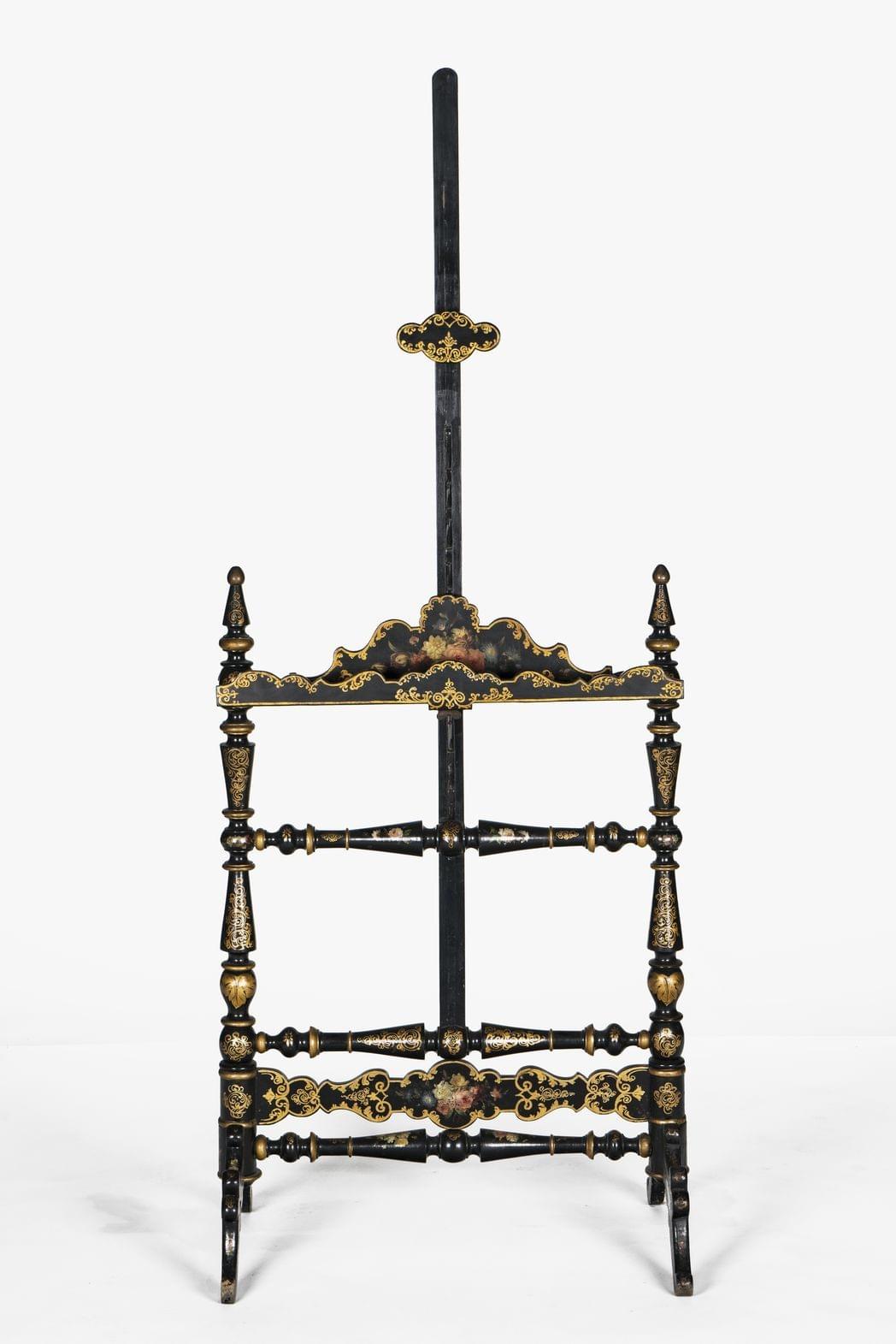 Bois noirci, peint et doré, à décor de fleurs, H 178 cm