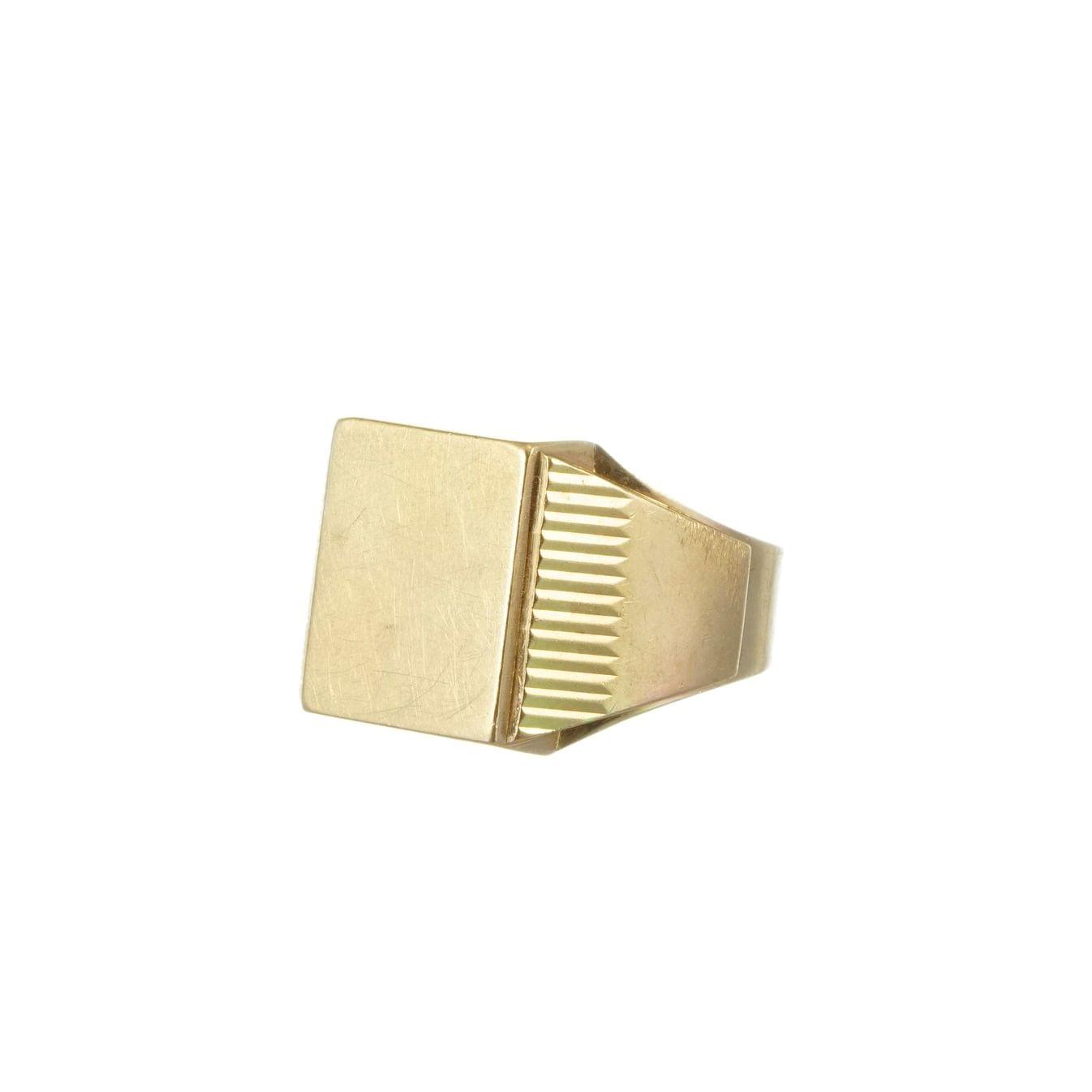 726. Bague chevalière sertie d'une tourmaline verte taille rectangle...