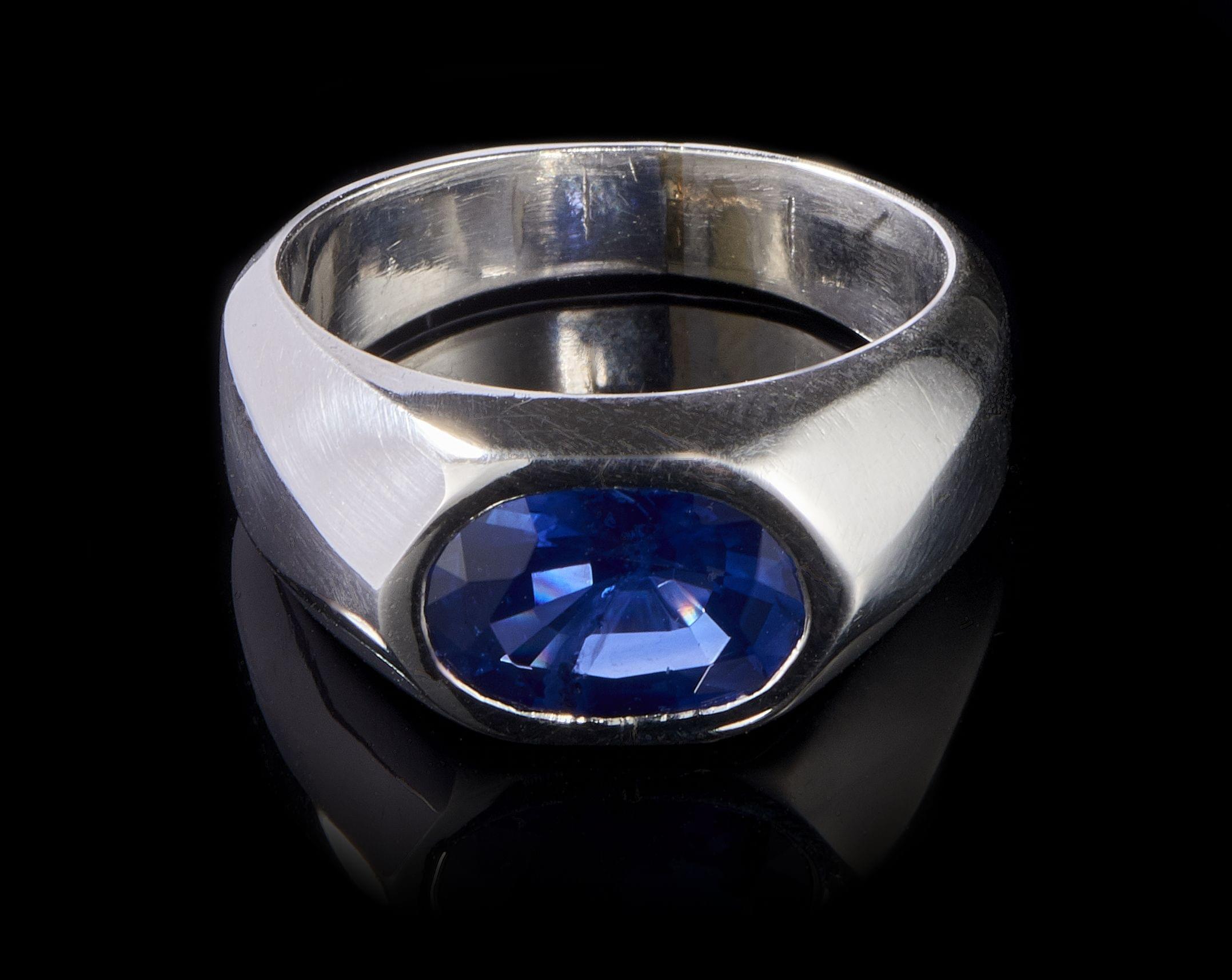 121. Chevalière sertie d'un saphir du Sri Lanka taille ovale (env. 3,3 ct)