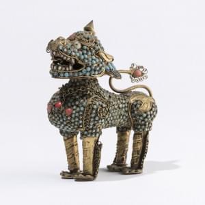 712. Deux vases couverts; l'un à décor de félins en relief, l'autre s...