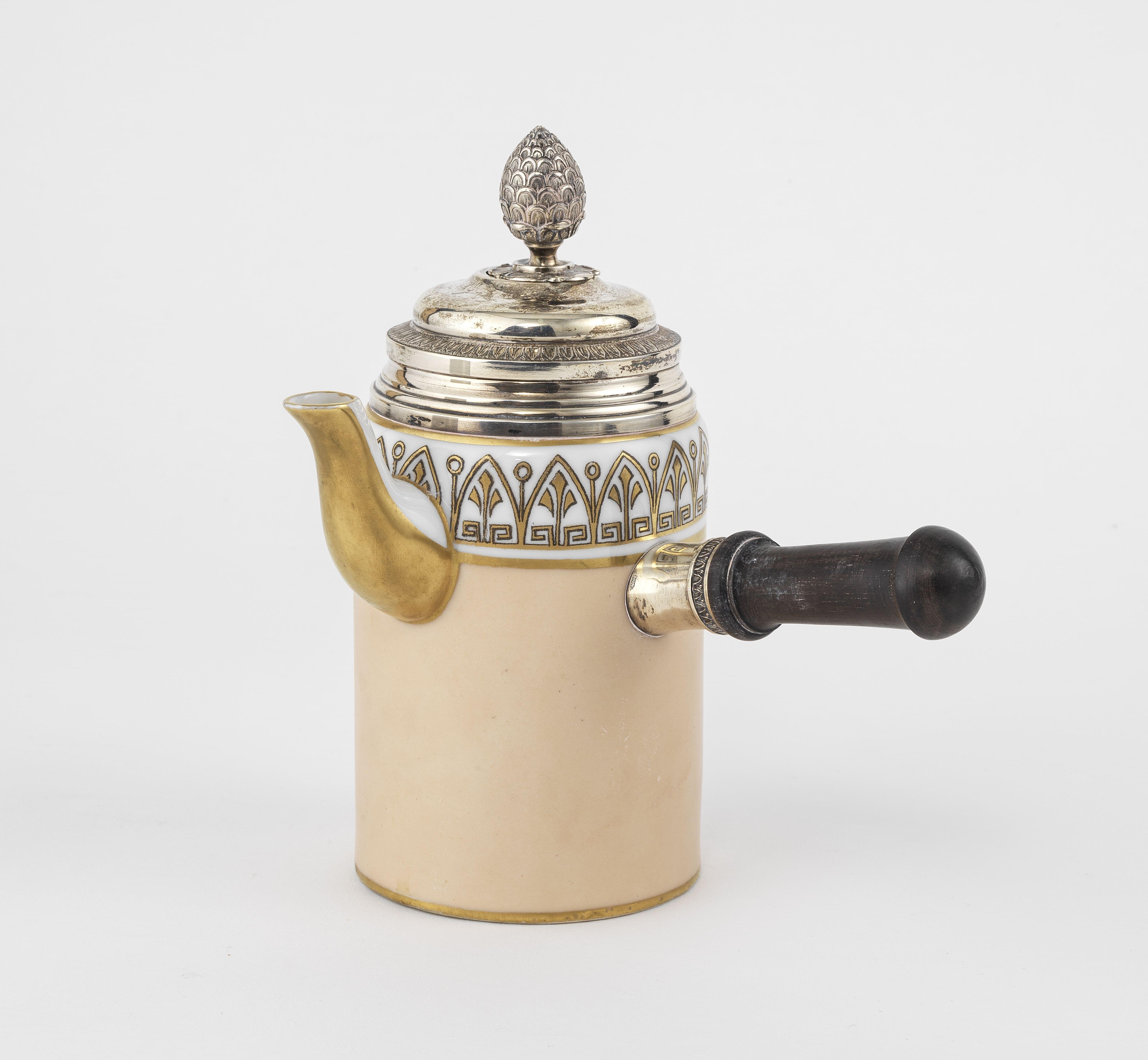 3724. Chocolatière pêche et or à motif d'ogives