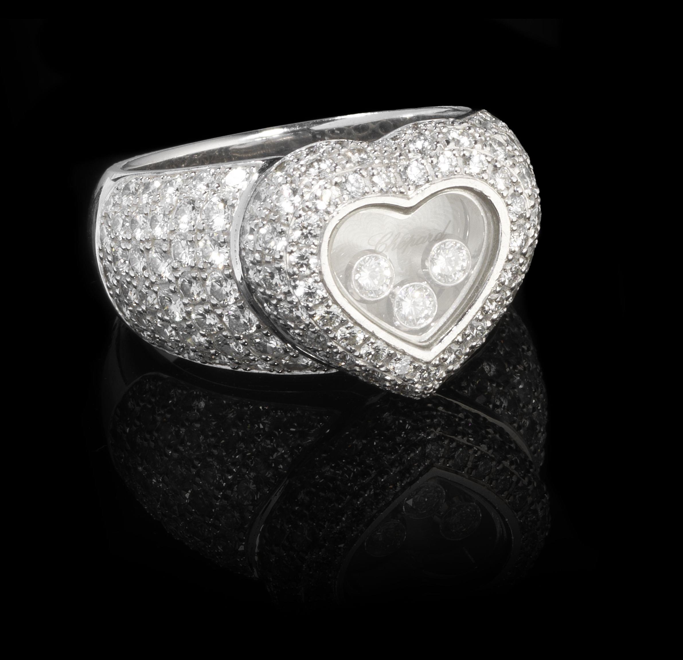 206. Chopard, Happy Diamonds, bague cœur centrée de trois diamants mobiles entourés et épaulés de pavages de diamants