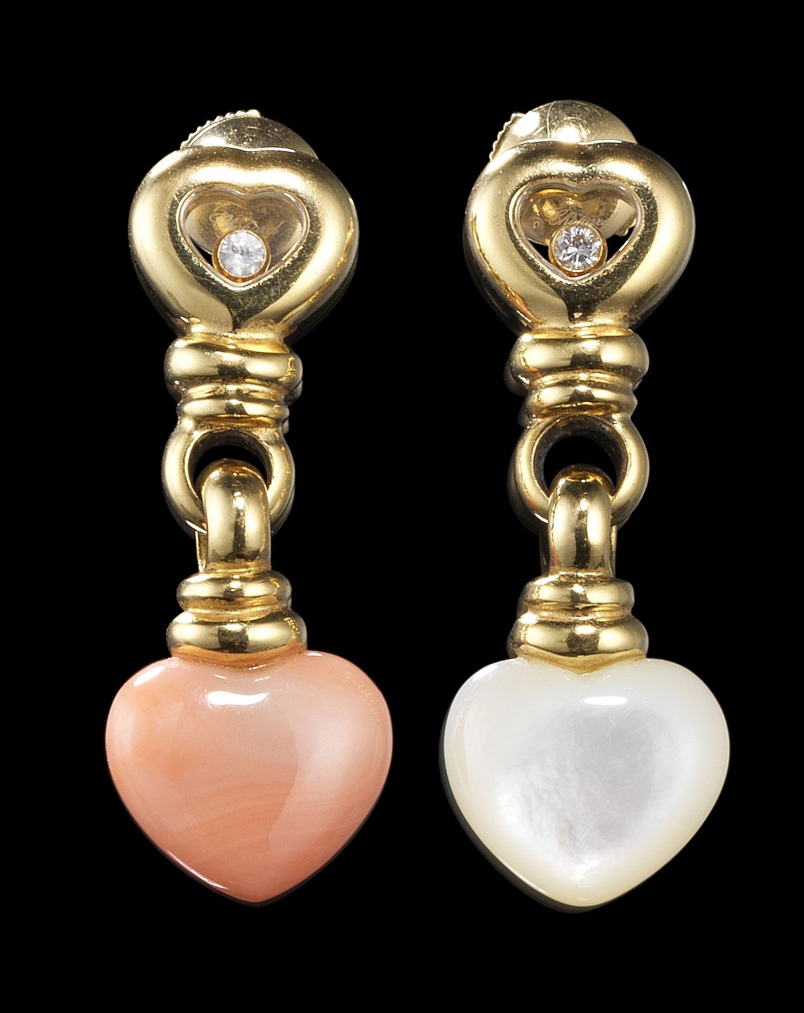 188. Jacob&Co, pendants d'oreilles ajourés retenant cinq pampilles pa...