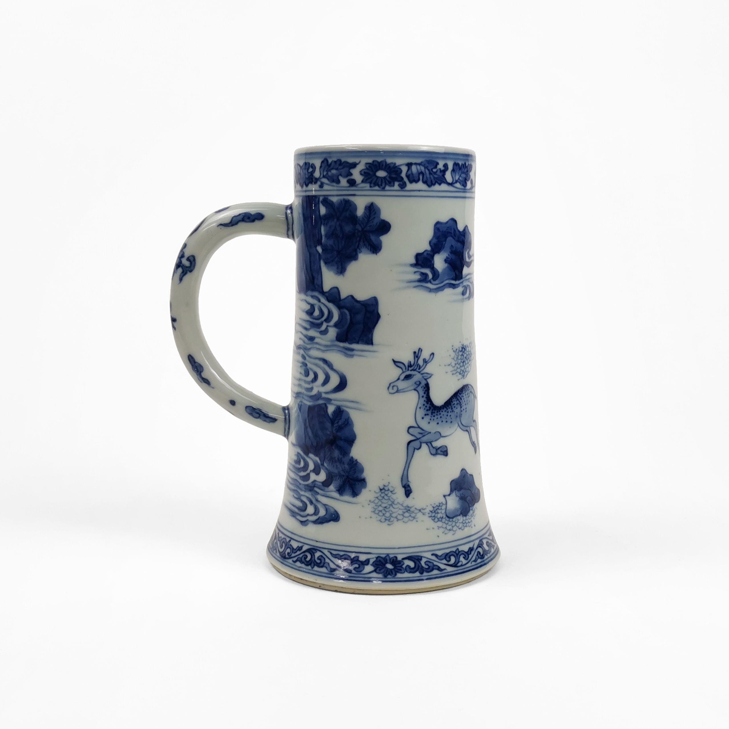 Porcelaine émaillée bleu blanc à décor de scène de chasse, H 19 cm