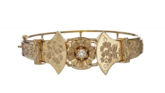 206. Bracelet jonc ouvrant ciselé d'un décor floral et orné d'un moti...