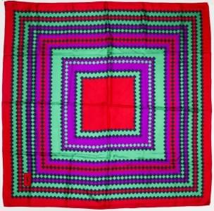 Soie unie à fond bleu foncé, framboise, corail, et violet, taill...