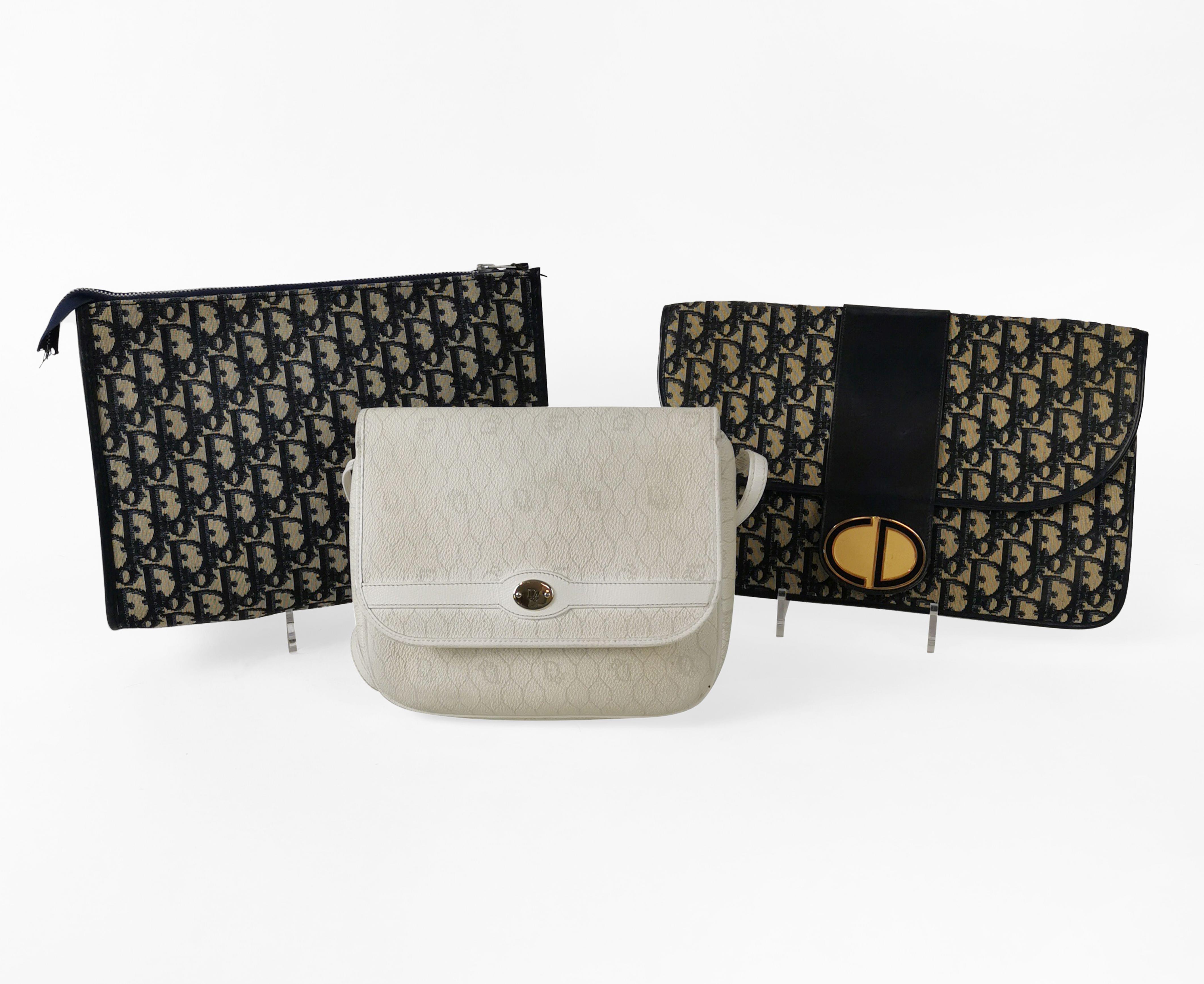 3744. Christian Dior, lot de deux pochettes en toile Dior oblique bleu et d'un sac à main porté épaule