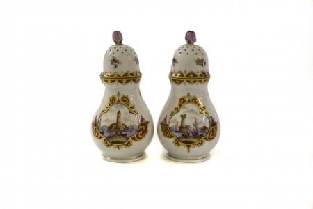 611. Paire de saupoudroirs à décor de paysages maritimes dans des mé...