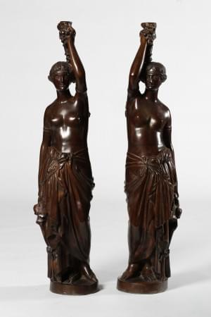 301. Paire de statues porte-torchères figurant des femmes drapées