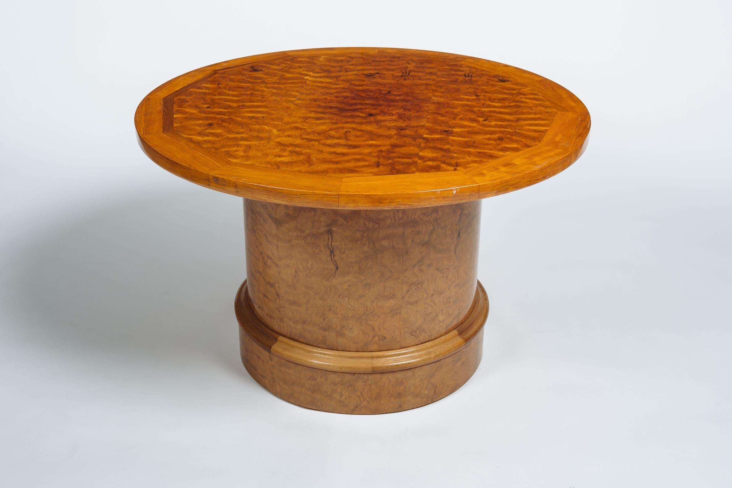 Guéridon rond de style art Déco, 1985, placage de bois fruitier, 57x90 cm. Collection David Sassoon