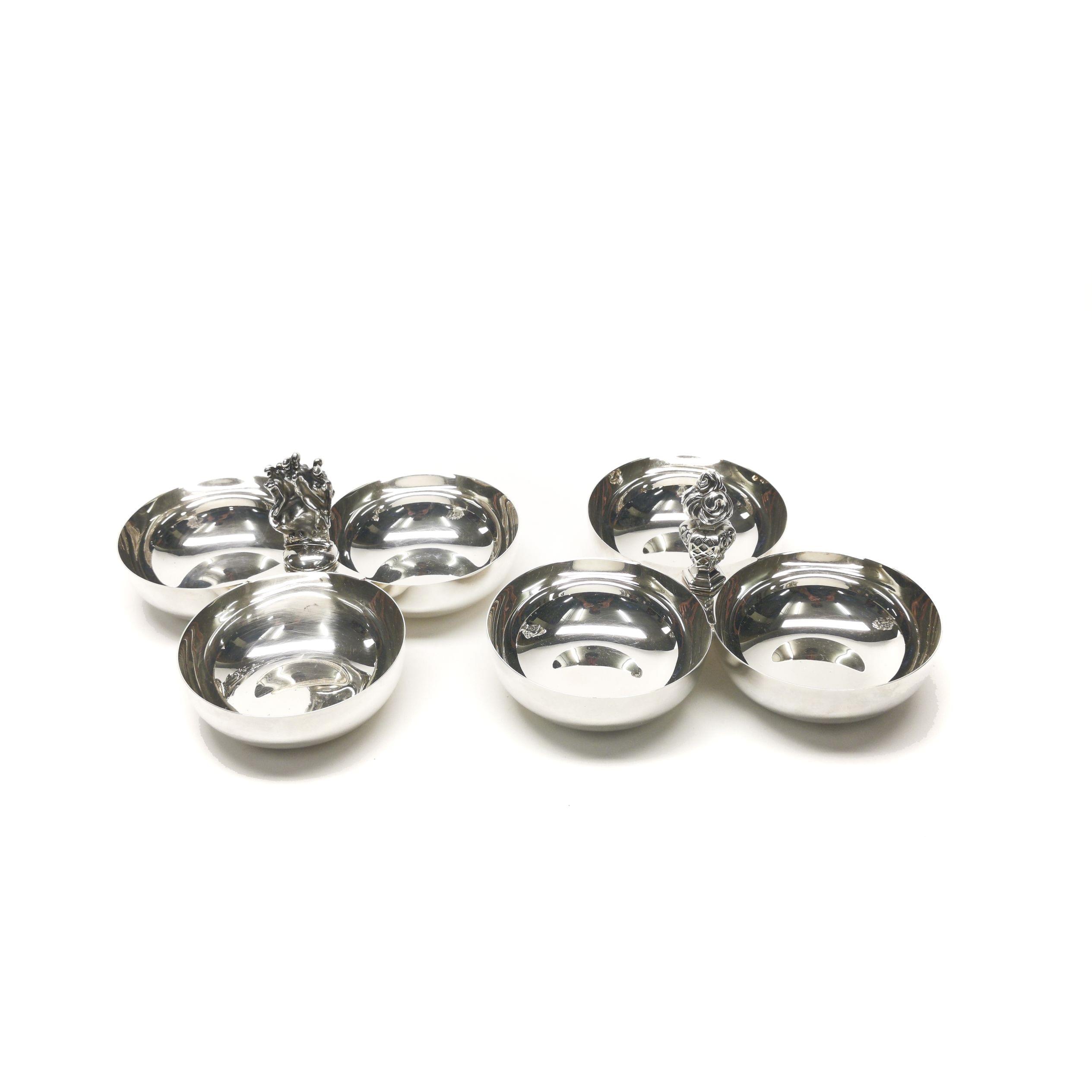 3623. Christofle, deux triples coupelle à prise pot à feu et groupe de corps