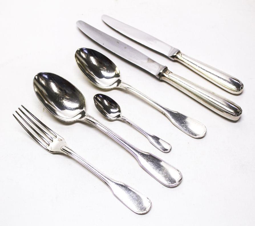 Métal argenté, comprenant: 12 fourchettes, 12 cuillères et 12 co...