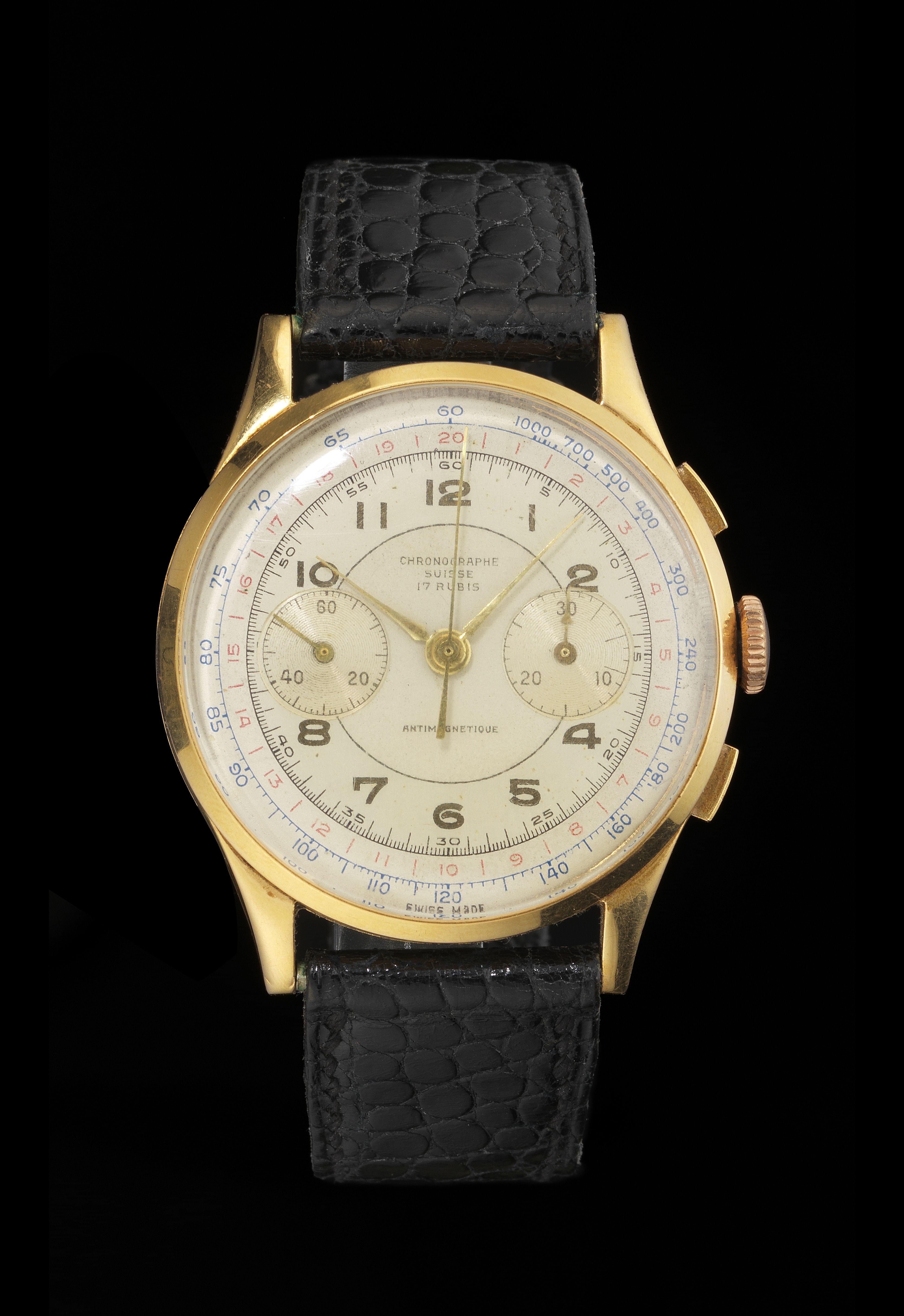 3645. *Chronographe Suisse, montre chronographe ronde mécanique