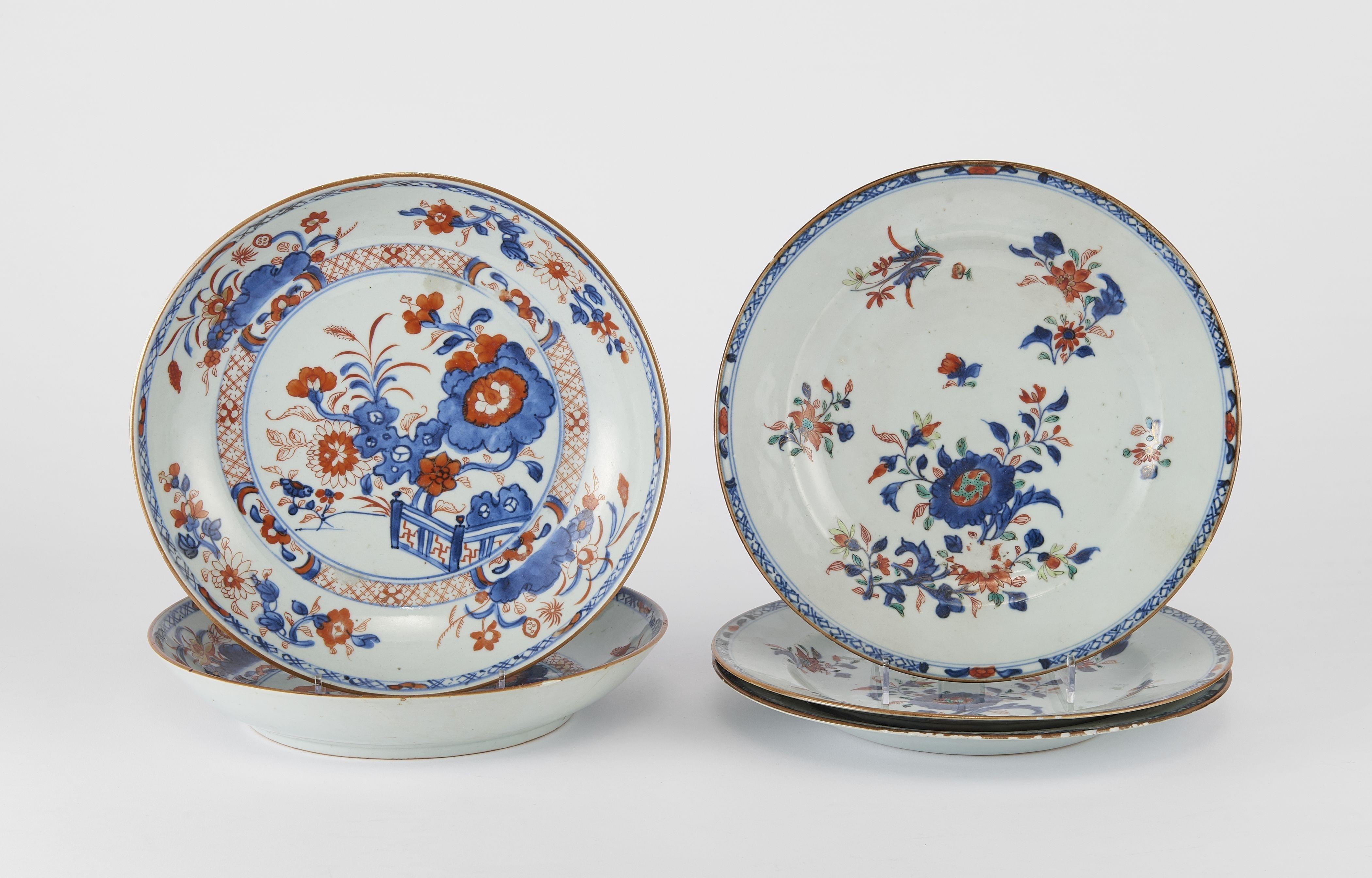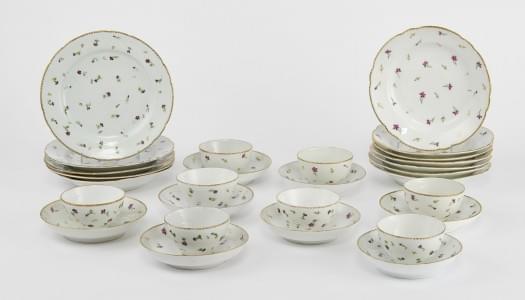 150. 12 assiettes et 8 tasses à décor de bleuets pourpres