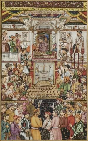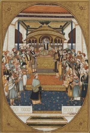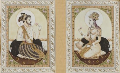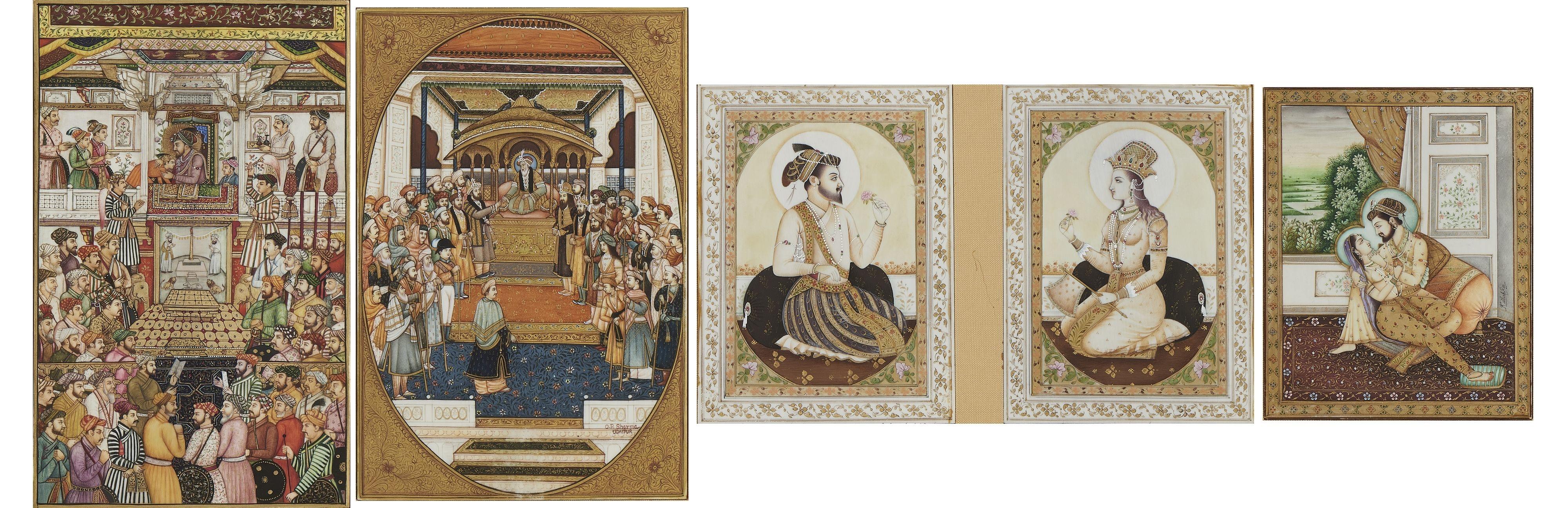 723. Cinq miniatures indiennes dans quatre cadres, XXe s